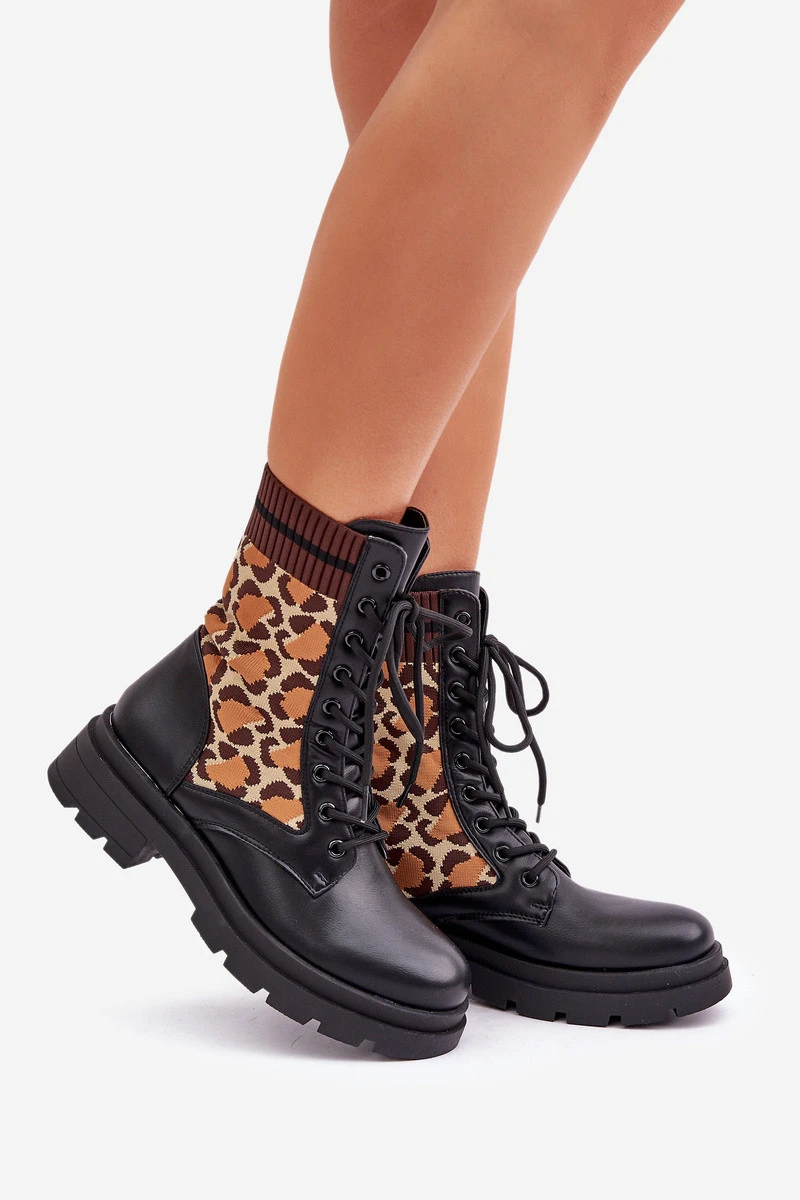 Dámské boty vyrobené z kombinace eko kůže a tkaniny, zdobené stylovým vzorem leopardího potisku. Model je šněrovací s kulatými špičkami, což zajišťuje pohodlí a stabilitu. Vnitřek je zateplený v oblasti chodidla, ideální na chladnější dny. Skvělá volba pro ženy, které si cení pohodlí a módní akcenty. Při výběru velikosti se řiďte tabulkou velikostí.EAN čárové kódy zboží jsou: