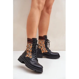 Dámské boty vyrobené z kombinace eko kůže a tkaniny, zdobené stylovým vzorem leopardího potisku. Model je šněrovací s kulatými špičkami, což zajišťuje pohodlí a stabilitu. Vnitřek je zateplený v oblasti chodidla, ideální na chladnější dny. Skvělá volba pro ženy, které si cení pohodlí a módní akcenty. Při výběru velikosti se řiďte tabulkou velikostí.