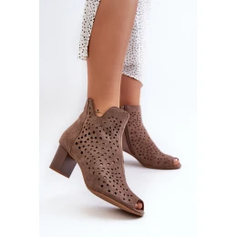 Dámské Botky Z Ekologického Semiše Na Podpatku S Otevřenými Prsty Hnědé Halania