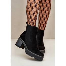 Dámské Botky Zateplené Na Podpatku Eko Semišové Černé Irissinae