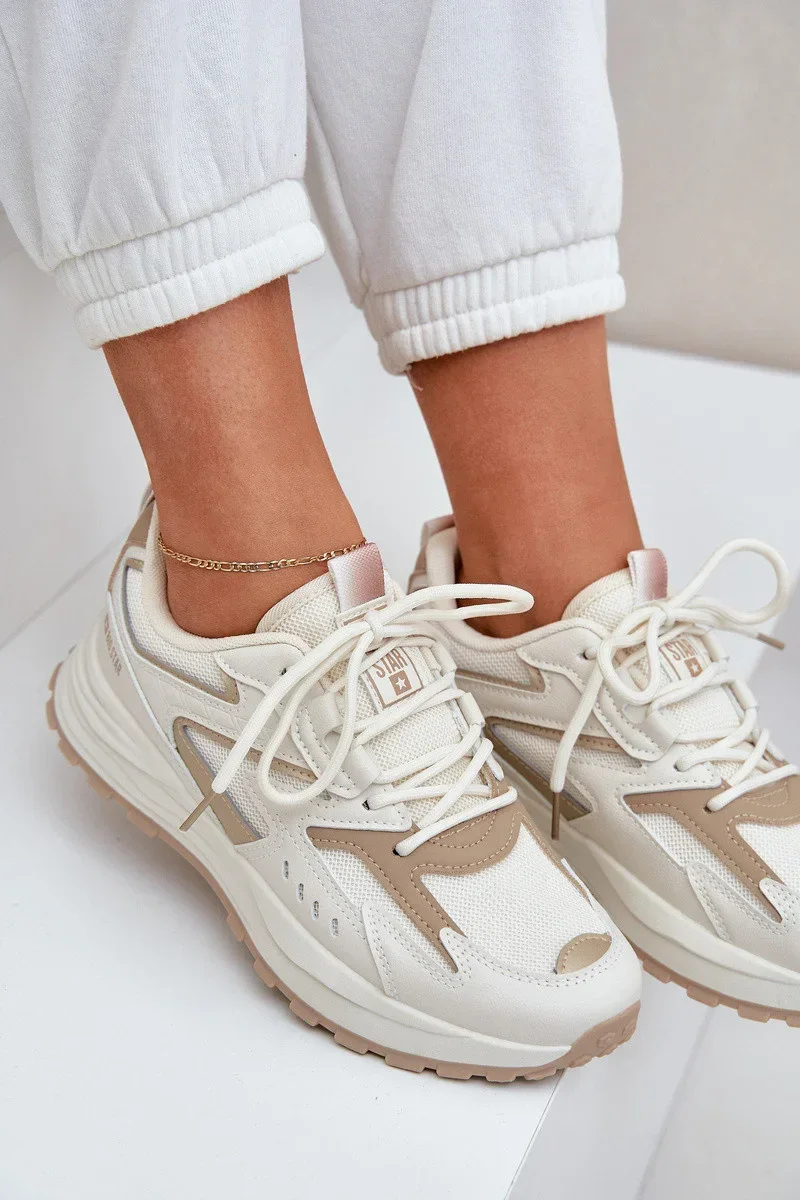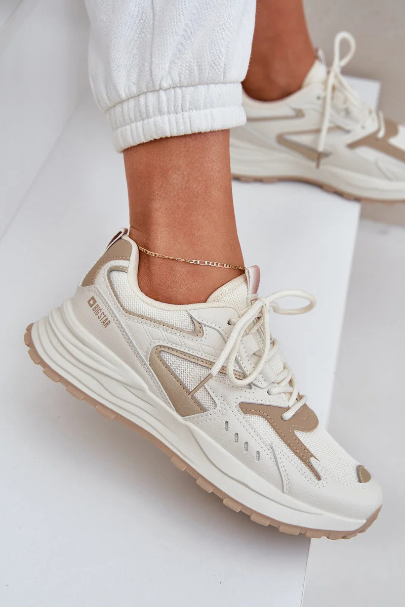 Moderní sportovní boty Big Star v neutrálním béžovém odstínu kombinují styl a funkčnost. Díky technologii HI-POLY SYSTEM poskytují skvělou oporu a pohodlí po celý den. Jsou ideální pro aktivní ženy, které hledají pohodlnou a zároveň elegantní obuv.
