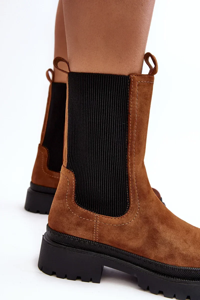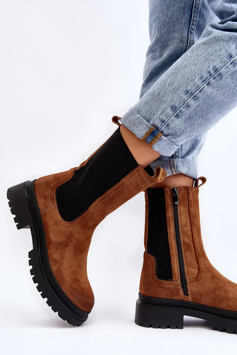 Chelsea boty mají gumový svršek, který umožňuje správné přizpůsobení boty šířce nohy. Tento model má zip na boční straně svršku. Kozačky mají plochý podpatek a platformu. Uvnitř zateplená přikrývkou na boty příjemnou na dotek. Podpatek v této obuvi je vyztužený. Ideální model pro chladné dny!Při výběru velikosti se řiďte tabulkou velikostí.