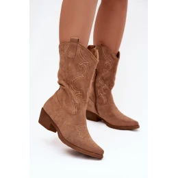 Dámské boty kovbojky na podpatku zateplené béžové model 21772330 - Boto
