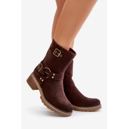 Dámské boty na nízkém podpatku se sponami hnědé Zudra