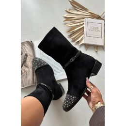Dámské boty na nízkém podpatku se zdobením a páskem D&A – černé