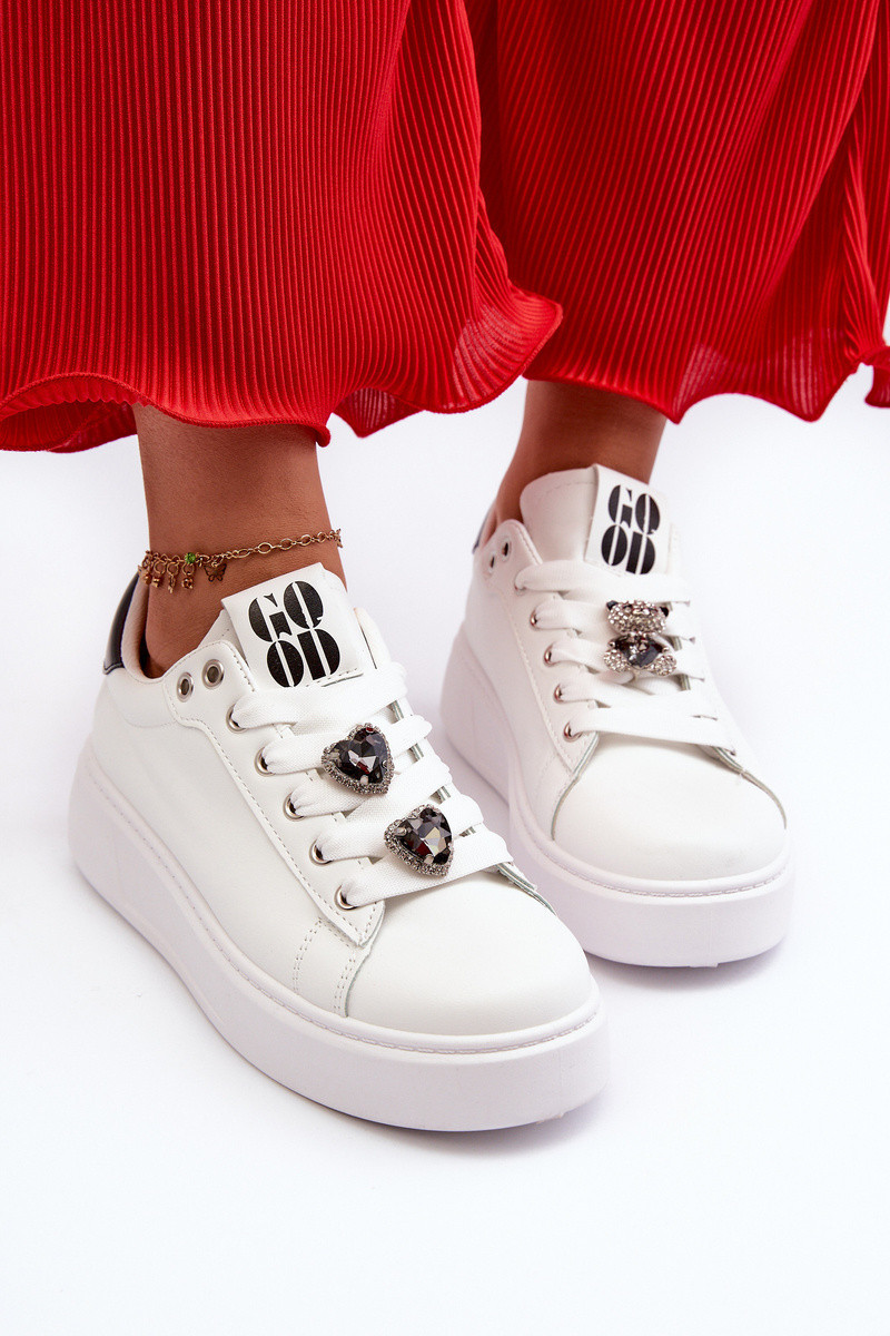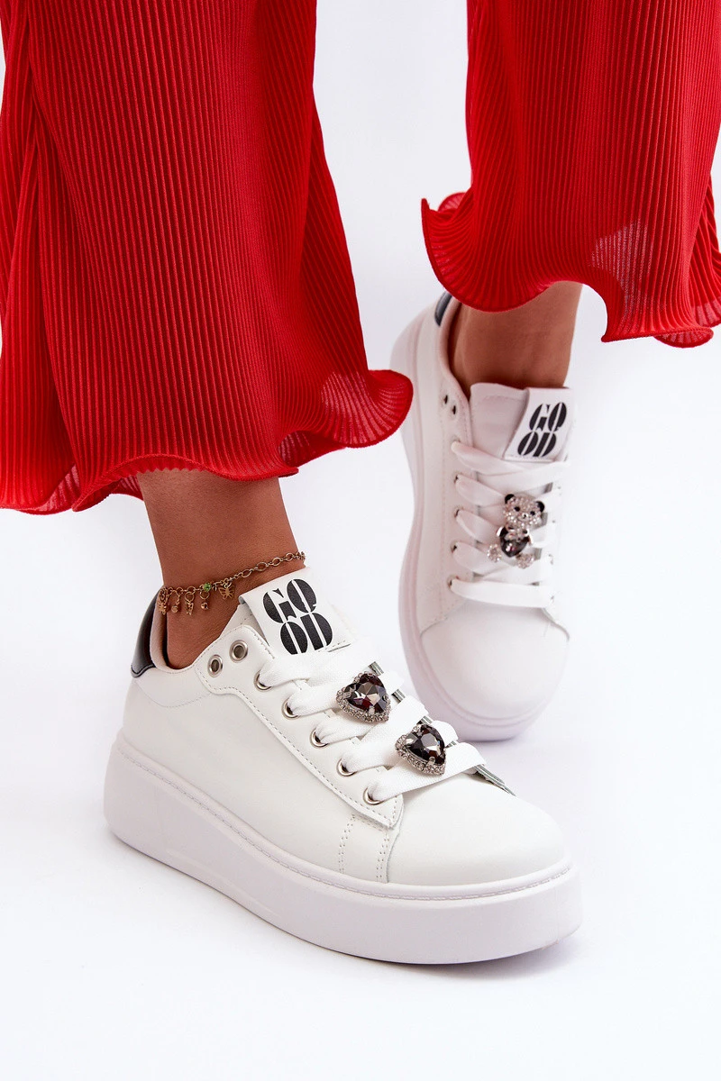 Tenisky s moderními sponami ve tvaru srdce jsou roztomilým doplňkem letního šatníku. Vyrobené z ekokůže. Umístěné na platformě poskytují stabilitu a pohodlí během nošení. Určitě přitáhnou pohledy a přidají půvab každému outfitu. Při výběru velikosti se řiďte tabulkou velikostí.