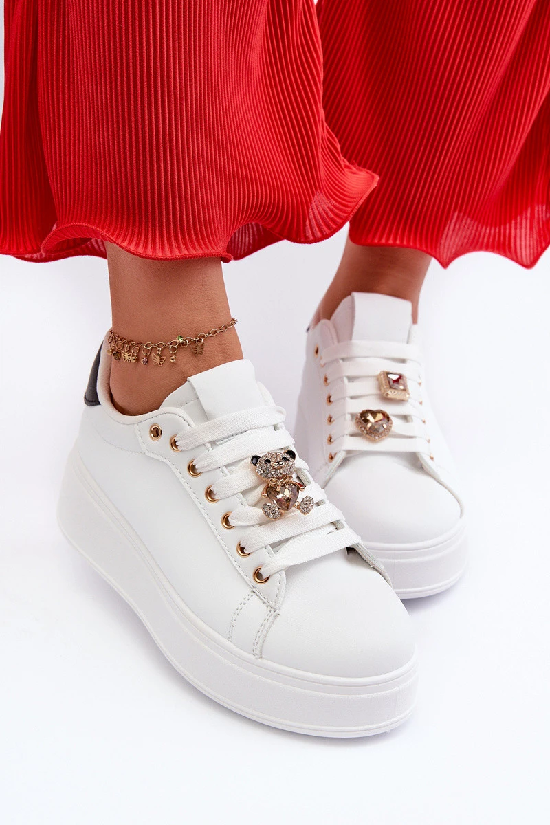 Dámské stylové tenisky s roztomilým plyšovým medvídkem. Vyrobeno z ekologické kůže. Umístěné na platformě. Špička zaoblená. Tento model bude ideální jak k kalhotám, tak k šatům, sukničkám! Při výběru velikosti se řiďte tabulkou velikostí.