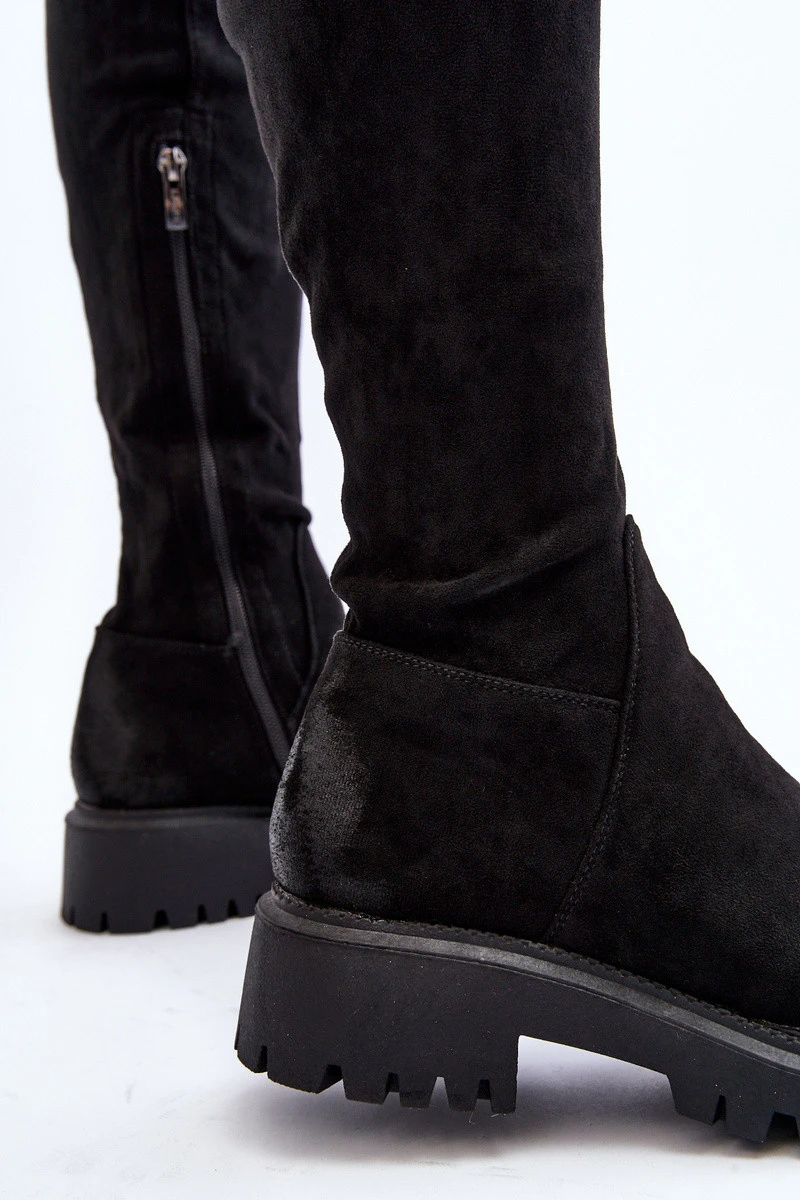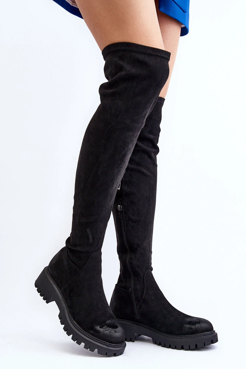 Dámské boty na plochém podpatku nad koleno Černé model 21644650 - Boto