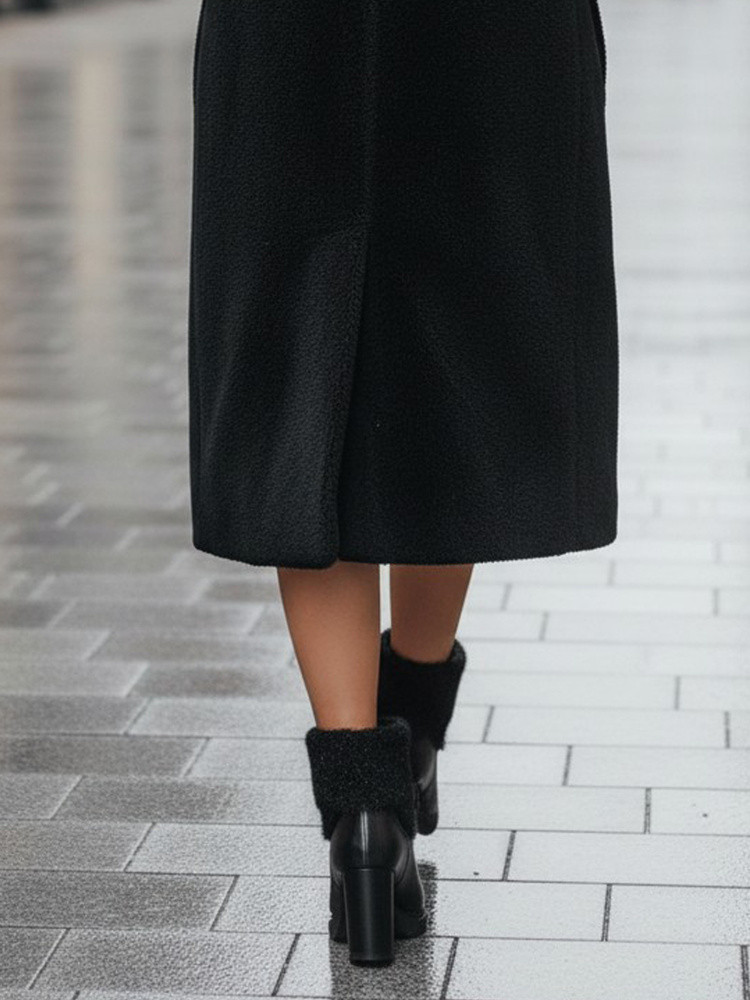 Model łączy cholewkę ze skóry ekologicznej z miękkim, dzianinowym kołnierzem, który dodaje całości bardziej zimowego charakteru. Wysoki, stabilny obcas słupkowy pozwala podkreślić sylwetkę, a jednocześnie zachowuje wygodę podczas chodzenia. Konstrukcja wsuwana ułatwia zakładanie, a ocieplenie z tkaniny zwiększa komfort w chłodniejsze dni.
