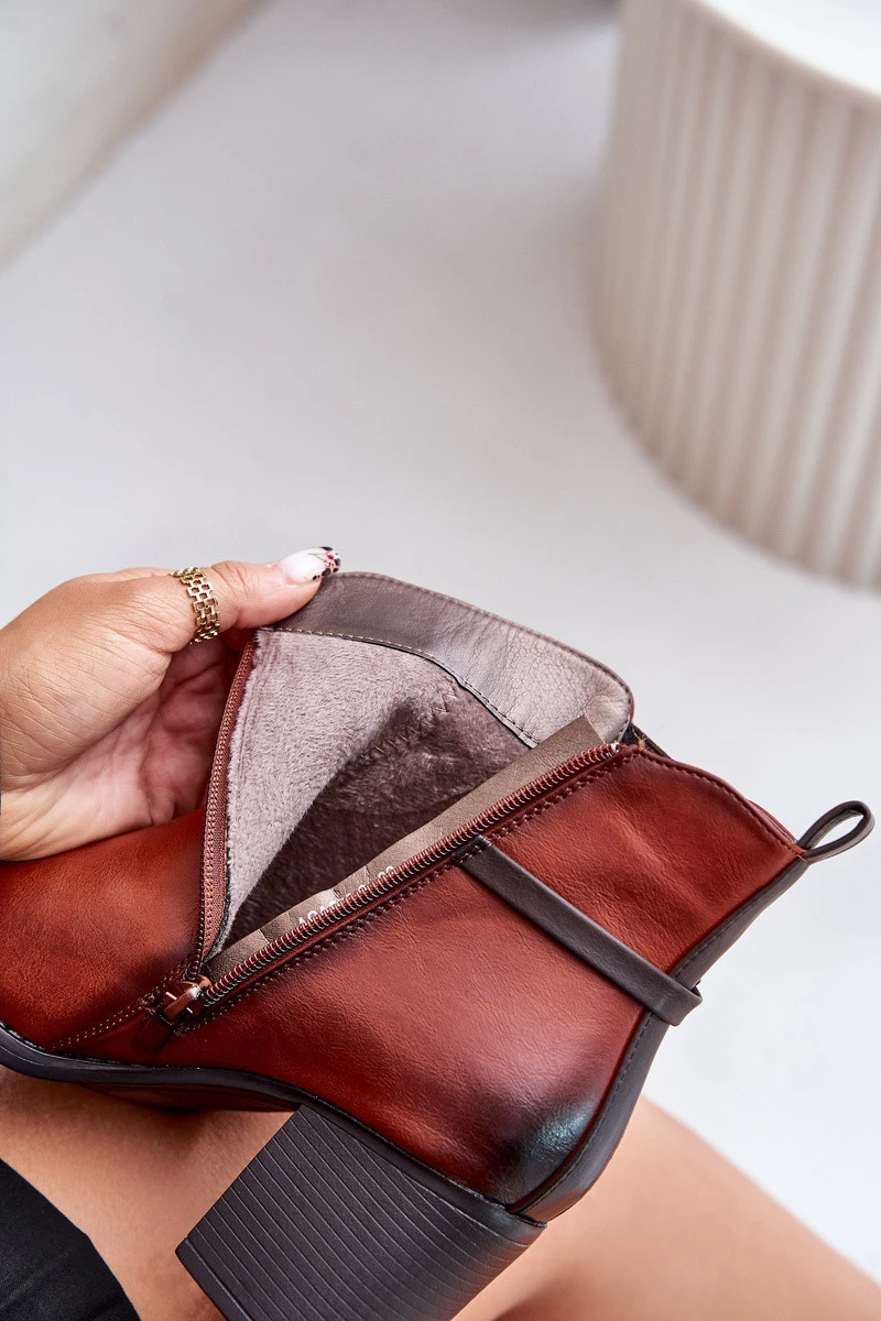Dámské boty na podpatku s a páskem hnědé model 21674038 - Boto