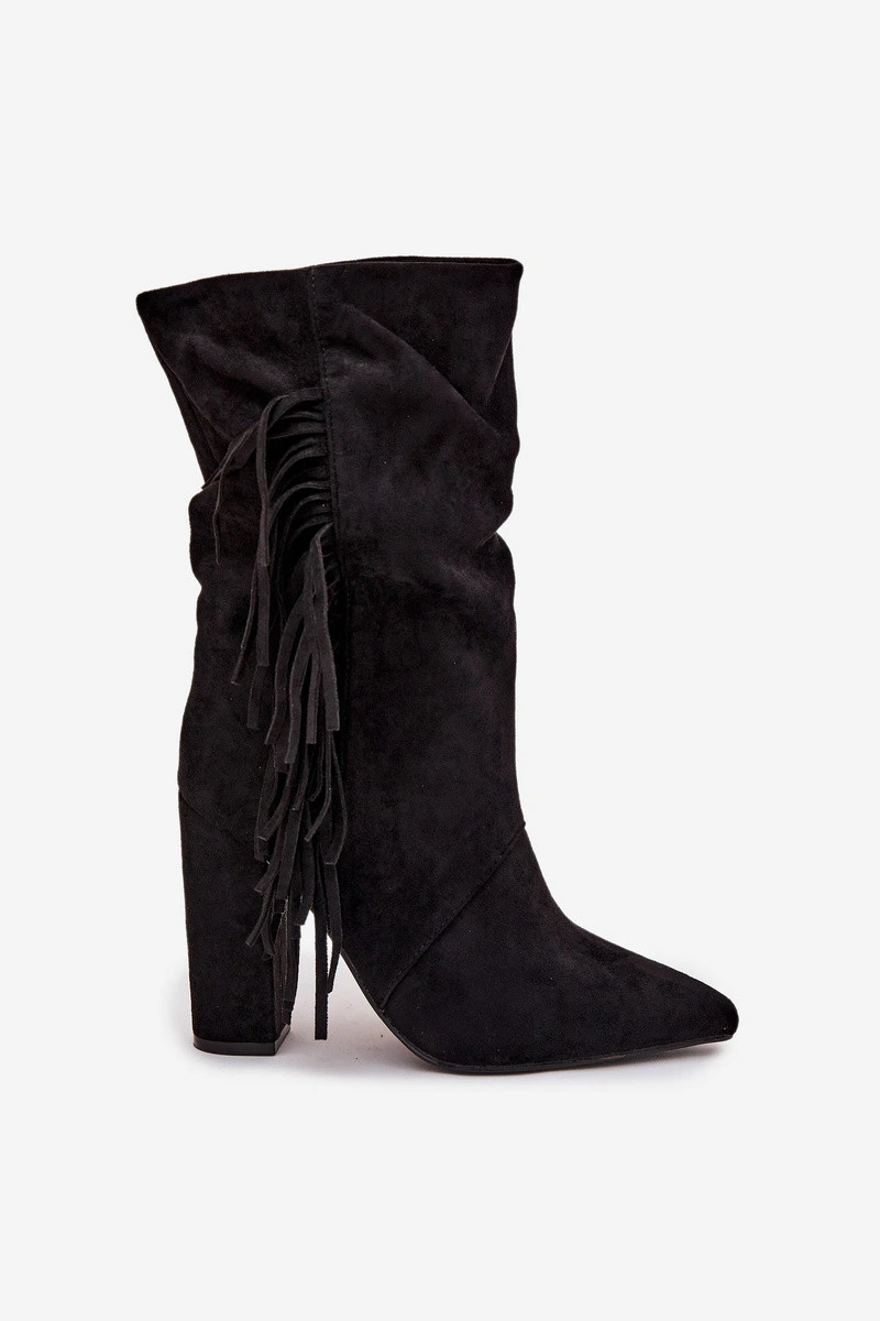 dámské boty na podpatku s třásněmi a zateplené černé model 21757532 - Boto