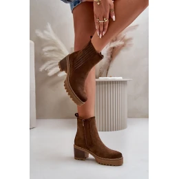 Dámské boty na podpatku z eko semiše zateplené tmavě hnědé Nevitas