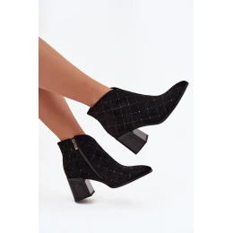 Dámské boty na sloupkovém podpatku se zdobením D&A – černé
