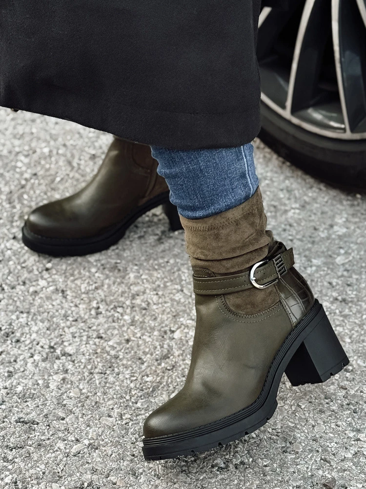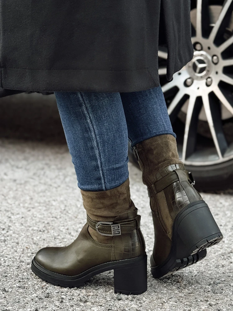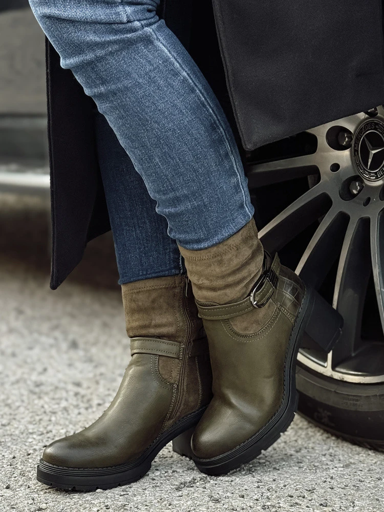 Wyrafinowane botki na stabilnym obcasie, które doskonale wpisują się w styl miejski. Wykonane z wysokiej jakości materiałów, zapewniają wygodę i elegancję w codziennym użytkowaniu. Idealne do stylizacji z skórzanymi legginsami lub klasycznymi dżinsami, dodają charakteru każdej stylizacji. Zamek po boku ułatwia szybkie zakładanie i zdejmowanie.