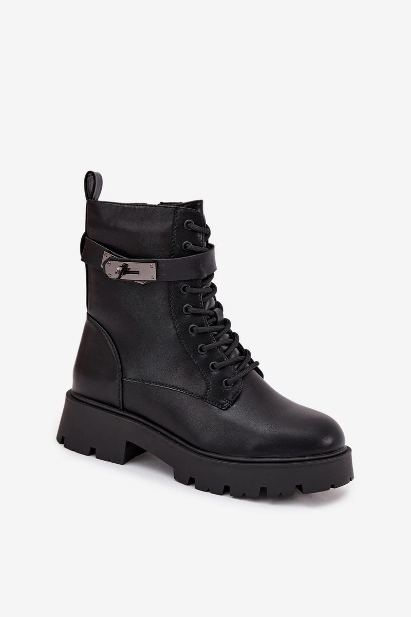 Dámské Boty Pracovní S Ozdobným Páskem Zateplené Eko Kůže Černé model 21707065 - Boto
