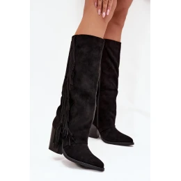 Dámské kozáky po kolena, vyrobené z eko semiše, jsou módním návrhem pro mnoho stylizací. Podpatek ve tvaru sloupu zajišťuje pohodlí a zapínání na zip usnadňuje obouvání. Špičaté špičky. Třásně na boku holeně přinášejí trochu uvolnění a bohémského charakteru. Ideální pro každodenní stylizace, skvěle se kombinují s šaty, sukněmi a kalhotami, čímž vytvářejí moderní, kovbojský vzhled. Při výběru velikosti se řiďte tabulkou velikostí.