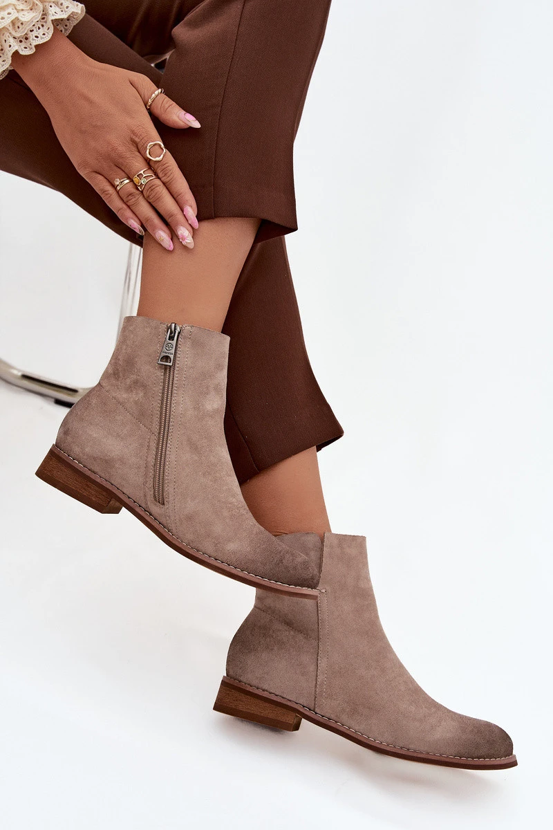 Model je osazen plochým podpatkem, který zajišťuje komfort při chůzi, a praktický zip usnadňuje obouvání a svlékání. Zaoblené špičky dodávají botám klasický a univerzální vzhled, který se hodí k mnoha stylizacím.