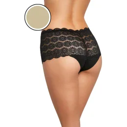 Dámské boxerky 171 Gabidar - béžová barva - jsou z jemné krajky s květovaným vzorem - díky svému střihu krásně tvarují zadeček - sed je zesílený látkou - svůdný a romantický design - na horním lemu mašlička