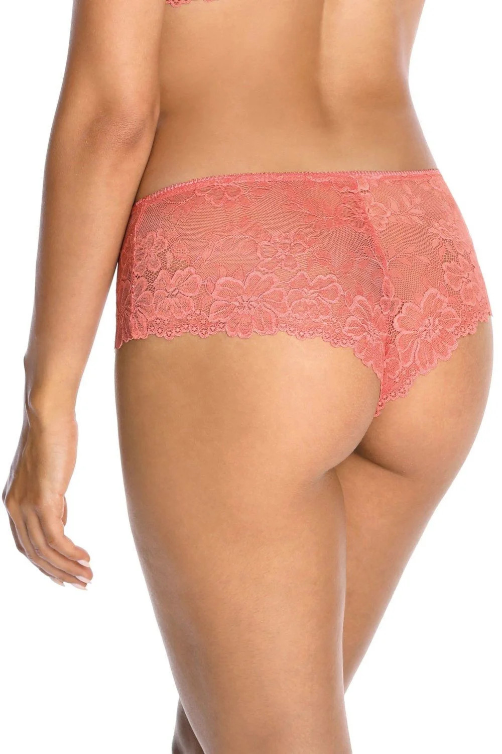 Dámské brazilky 053/54/2 Carmela peach MAT - broskvová barva - z krajky s květinovým motivem - bavlněný klín