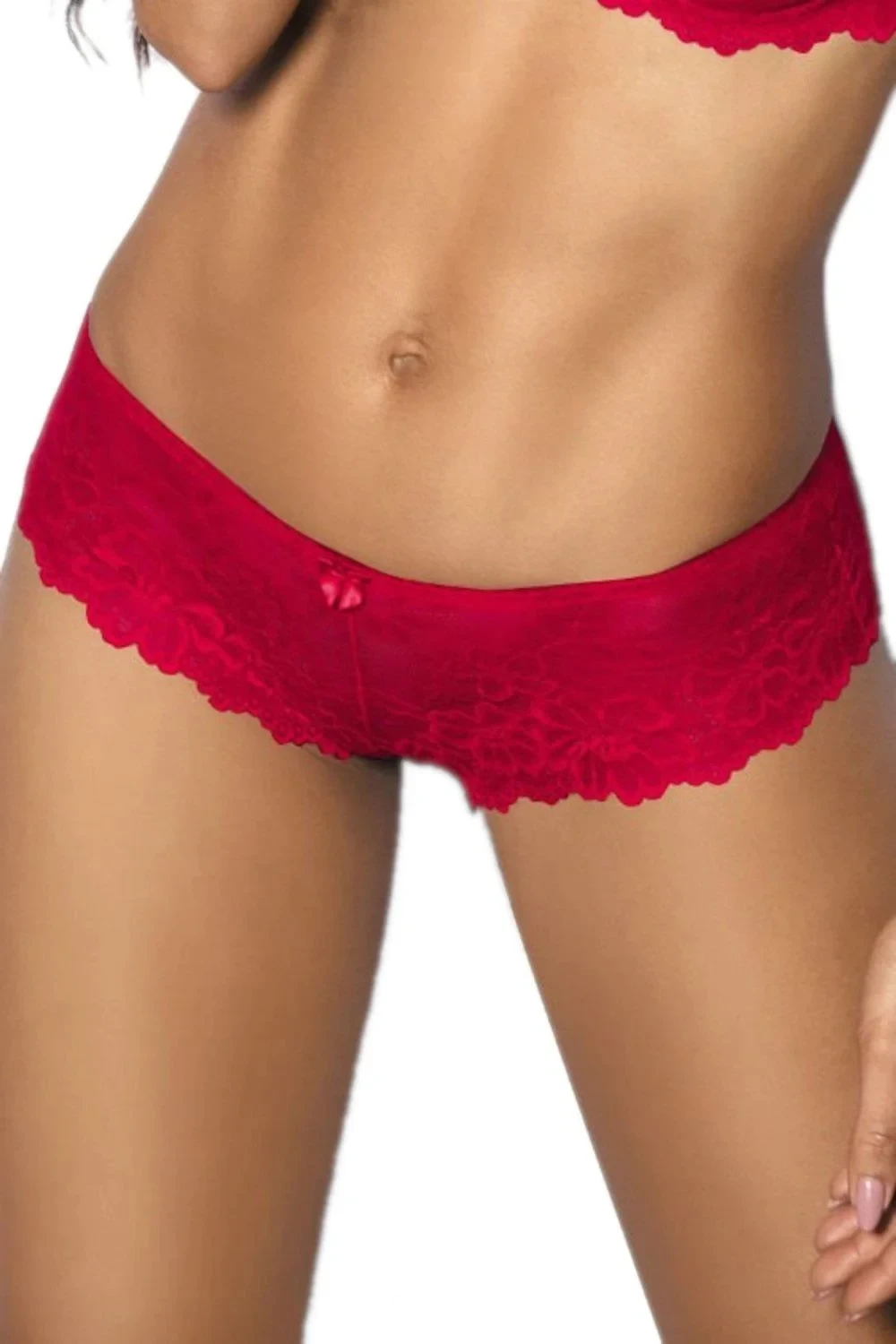Dámské brazilky 053/54/2 Carmela red MAT - červená barva - z krajky s květinovým motivem - bavlněný klín