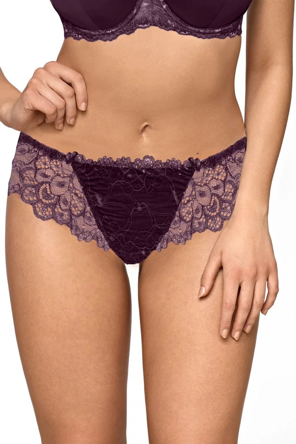 Dámské brazilky 1030/b Novato plum AVA - švestková barva - z příjemného mikrovlákna - přední část z jemné krajkové síťoviny - zadní část z transparentní síťovinyMateriálové složení: 91% polyamid + 5% bavlna + 4% elastan