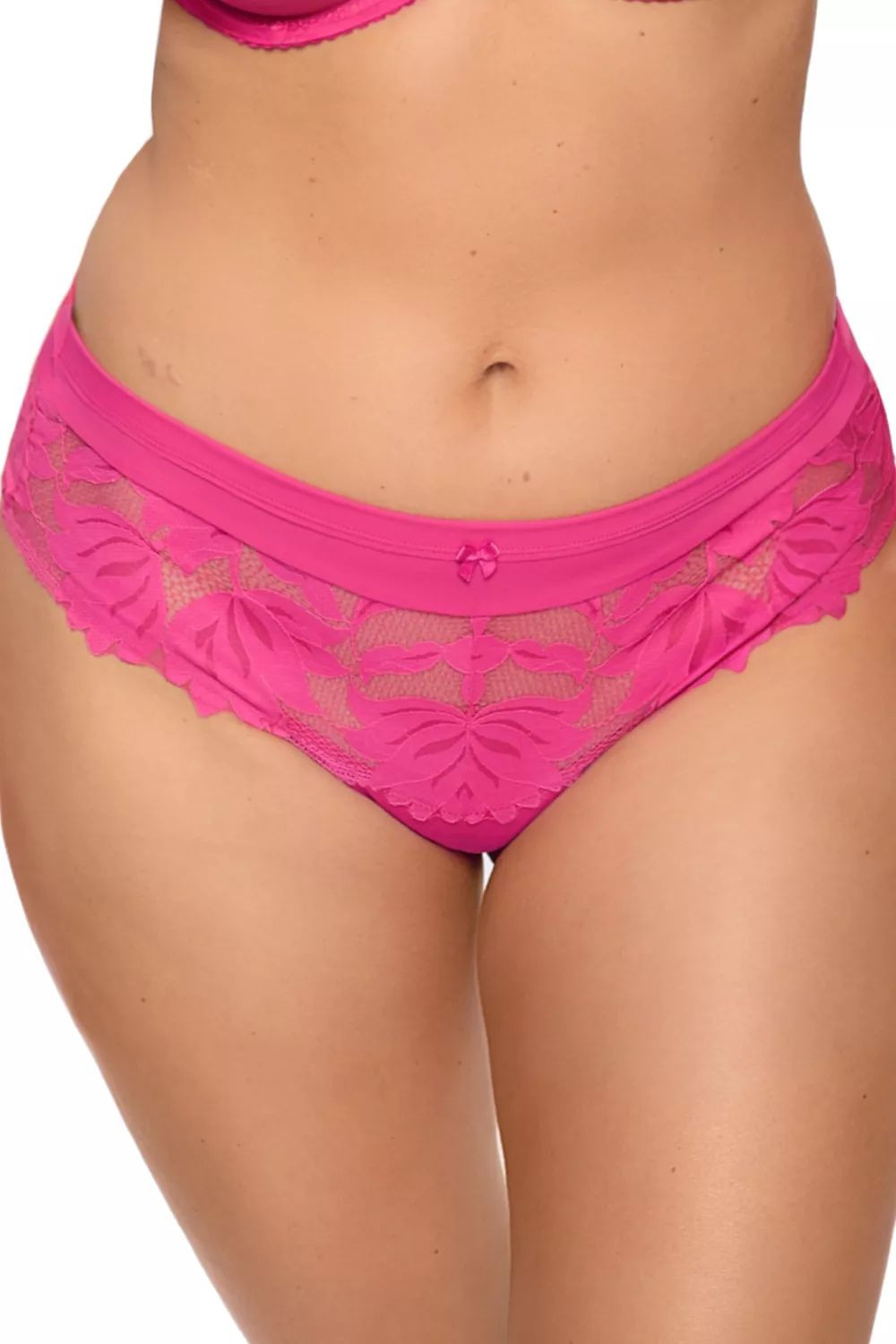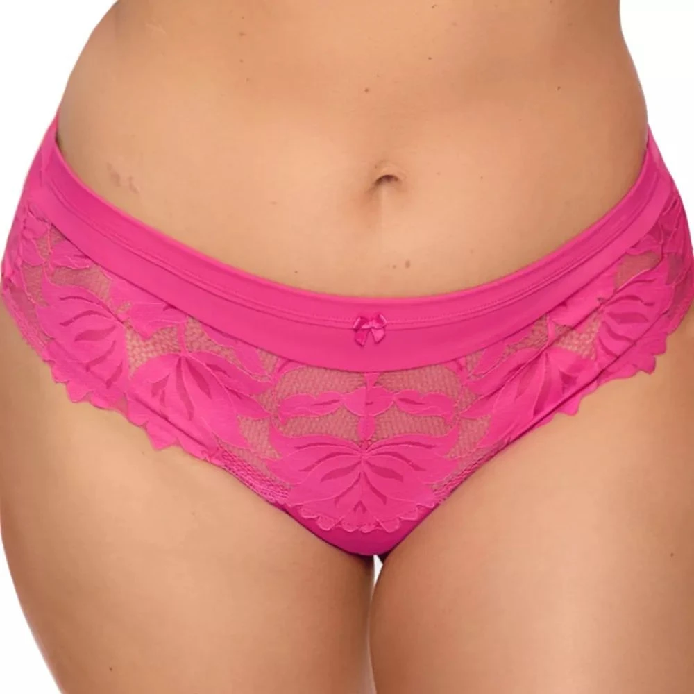 Dámské brazilky 1135 Nike fuchsia GAIA - fuchsiová barva - z krajky s květinovým motivem - plochá gumička a ozdobná mašlička v pase