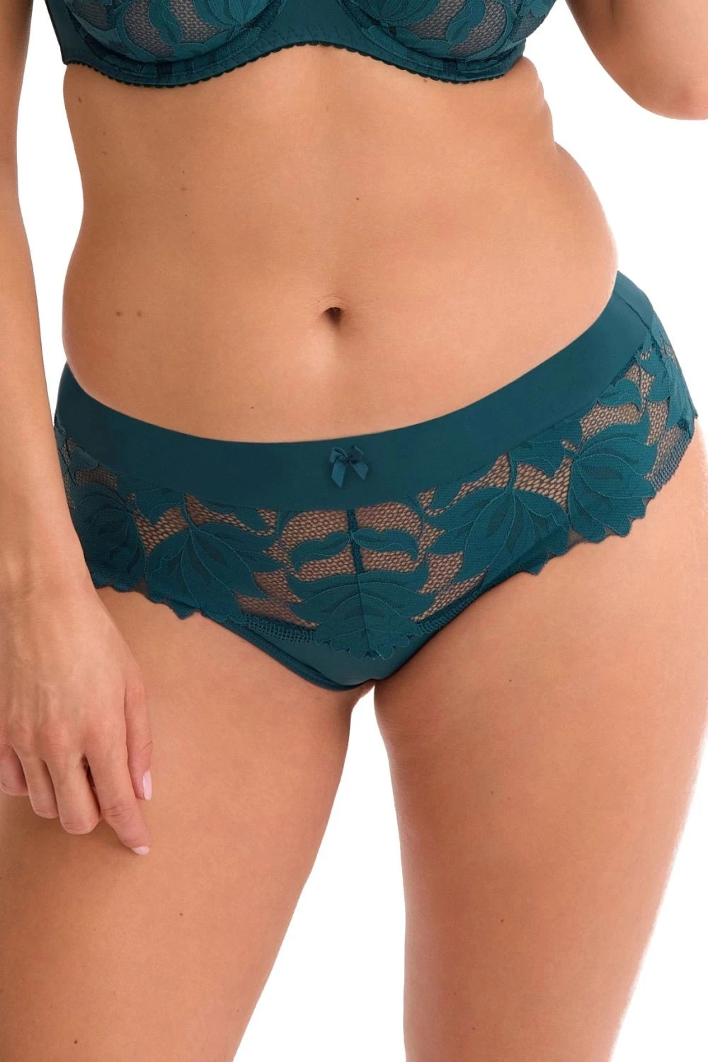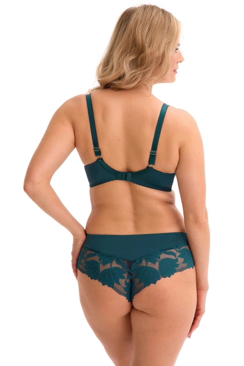 Dámské brazilky 1135 Nike green GAIA - zelená barva - z krajky s květinovým motivem - plochá gumička a ozdobná mašlička v pase