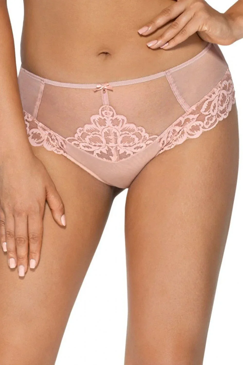 Dámské brazilky 1993 Casabella AVA - pudrová barva - z průsvitné síťoviny zdobené krajkou