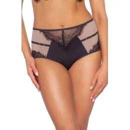 Dámské brazilky 2007/b Jardin cold espresso AVA - hnědá barva - z vysoce jakostního mikrovlákna - přední část z transparentní síťoviny - zdobenou krajkovou vsadkou a pruhy - zadní část z hladké látky a dvojitého tylu