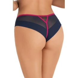 Dámské brazilky 791 Kayla GORSENIA - tmavě modrá barva - z pružného tylu - přední část zdobená fuchsiovou výšivkou s květinovým motivem - na bocích plné