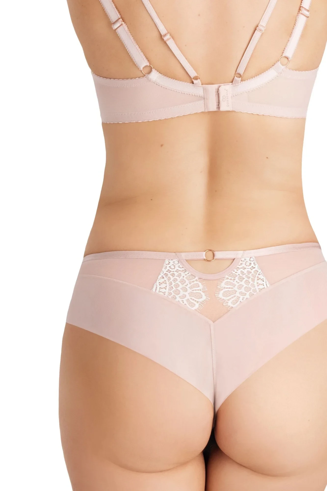 Dámské brazilky 854 Romantic vibe GORSENIA - béžová barva - přední část v kombinaci jemného dvojitého tylu a krajky - zadní část ozdobená výřezemMateriálové složení: 90% polyamid + 7% elastan + 3% polyester
