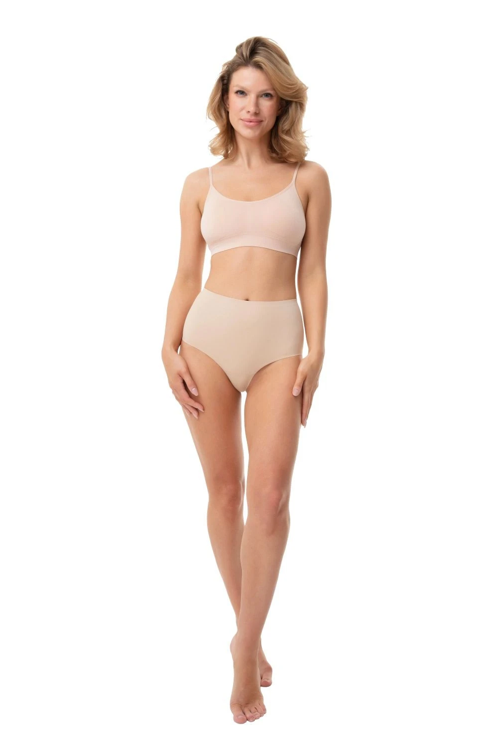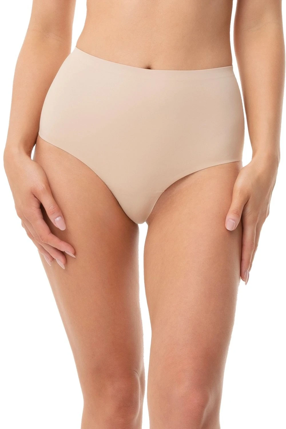 Dámské brazilky Amber brasil maxi beige JULIMEX - béžová barva - vypasované - vysoký pas - ultratenký lem - přední část podšitá síťovinou - bezešvá technologie Invisible-Line® - pod oblečením neviditelné
