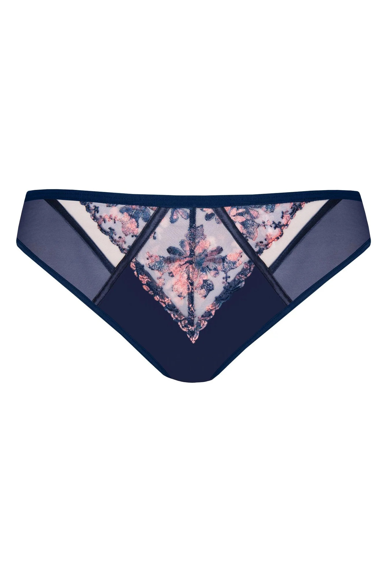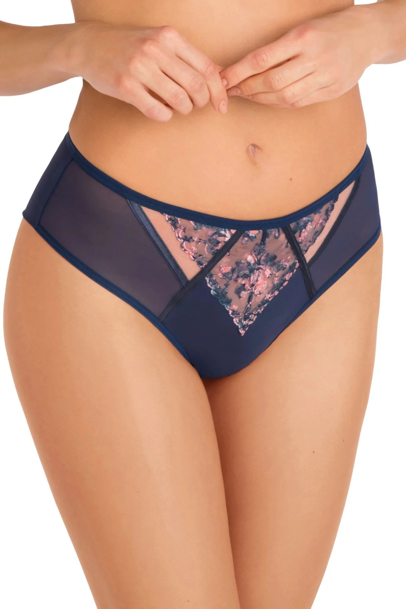 Dámské brazilky 822 Edna GORSENIA - tmavě modrá barva - kombinace elastického tylu a mikrovlákna - plné boční části - zadní část z tylové dvojité síťoviny