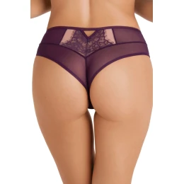 Dámské brazilky 803 Violet GORSENIA - fialová barva - přední část zdobená krajkovou vsadkou, která je podšitá béžovým tylem - zadní část z tylové síťoviny a krajky - boční části jsou plné