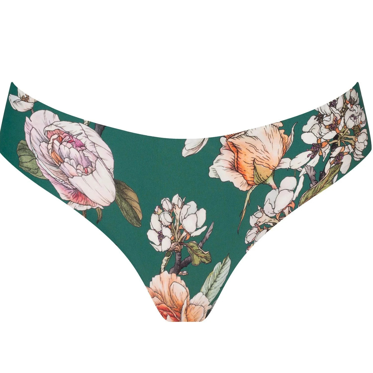 Dámské brazilky Tea Rose JULIMEX - zelená barva - z vysoce jakostní tkaniny - se vzorem květin - technologie INVISIBLE LINE na ultratenké okraje - řezané laserem - neviditelné pod oblečením