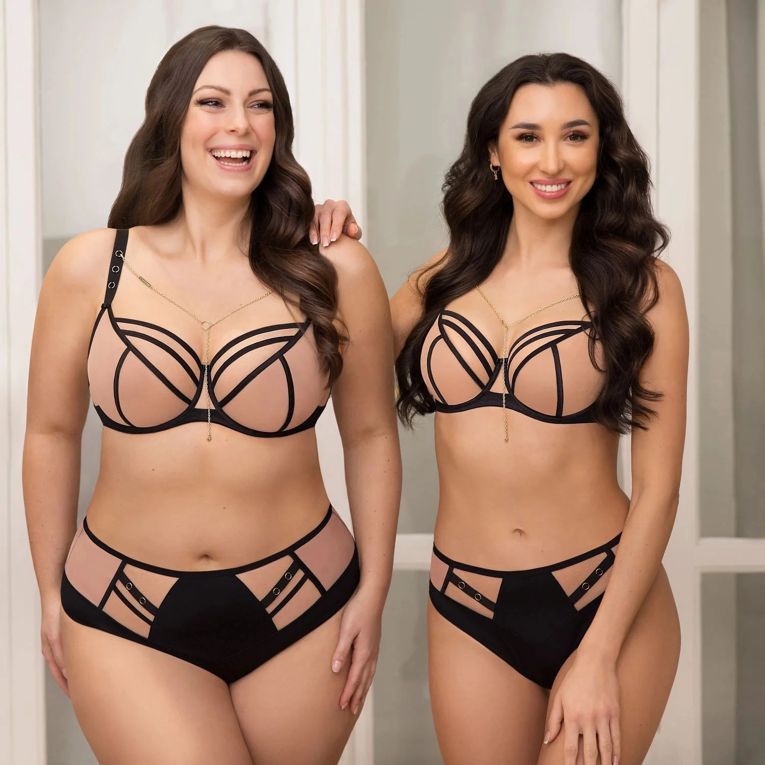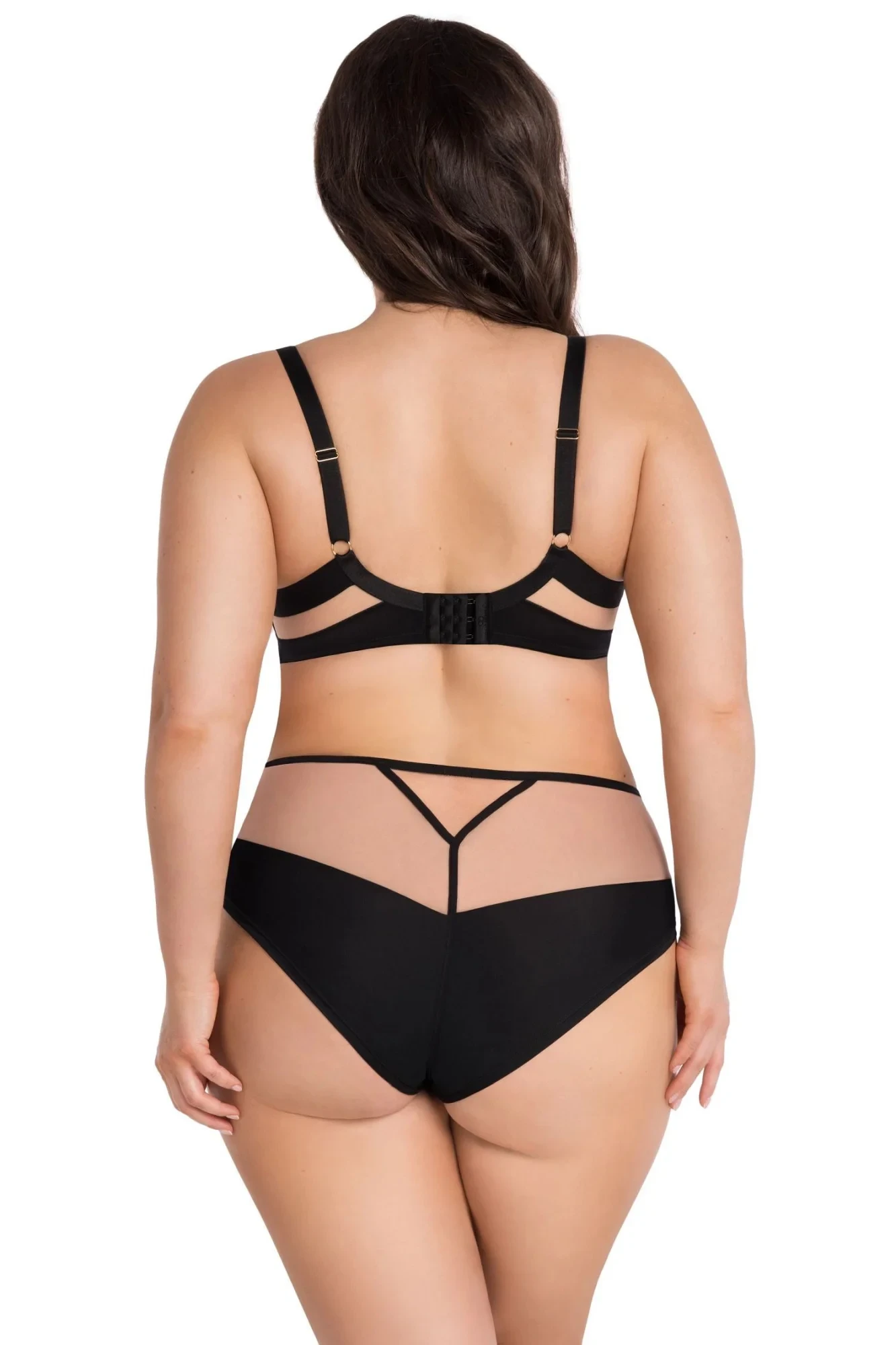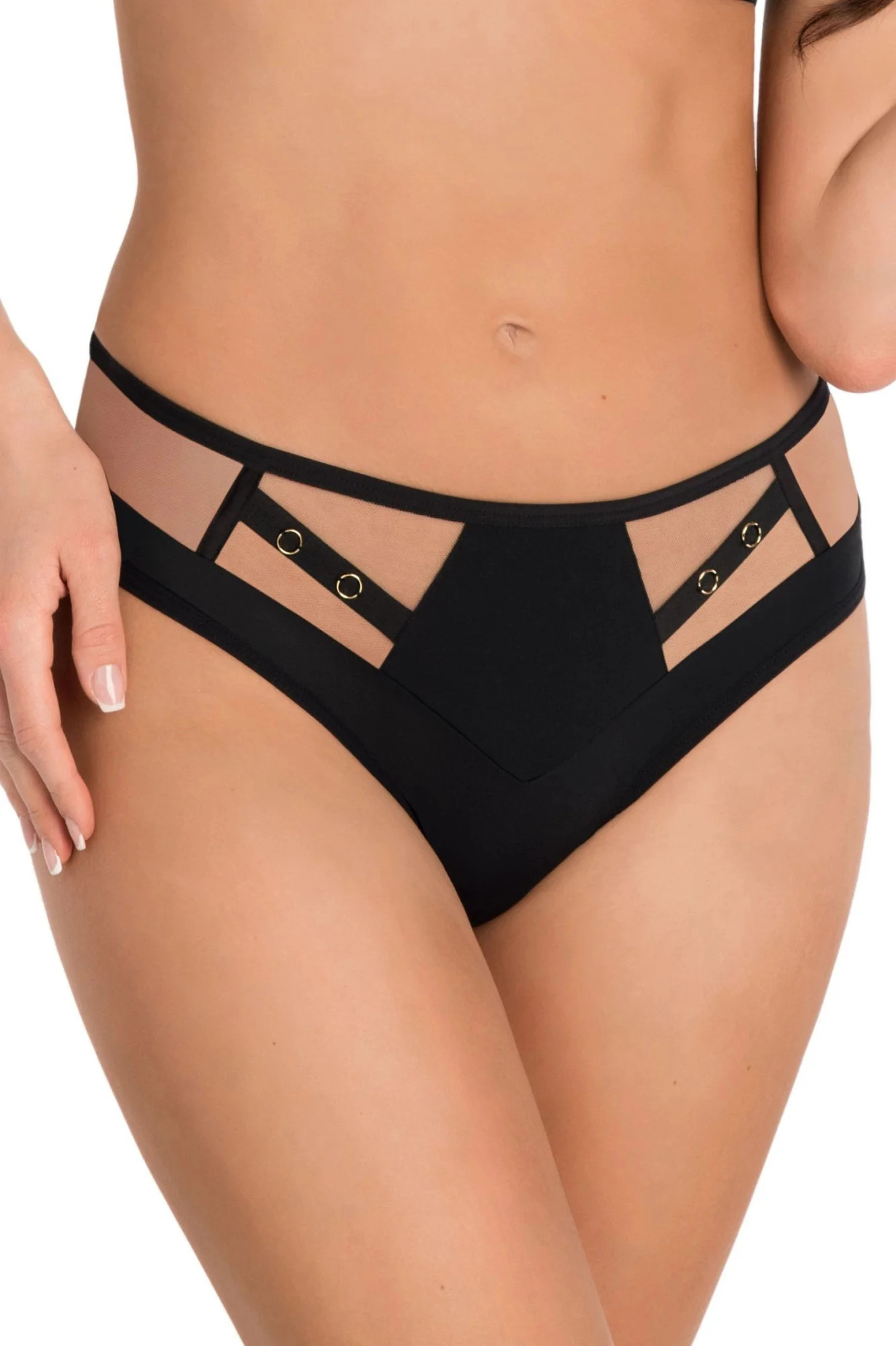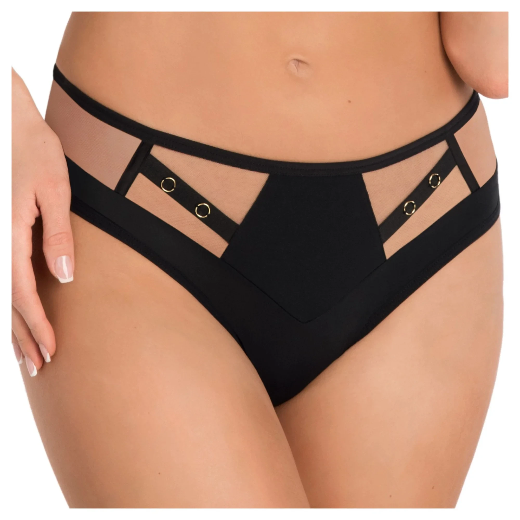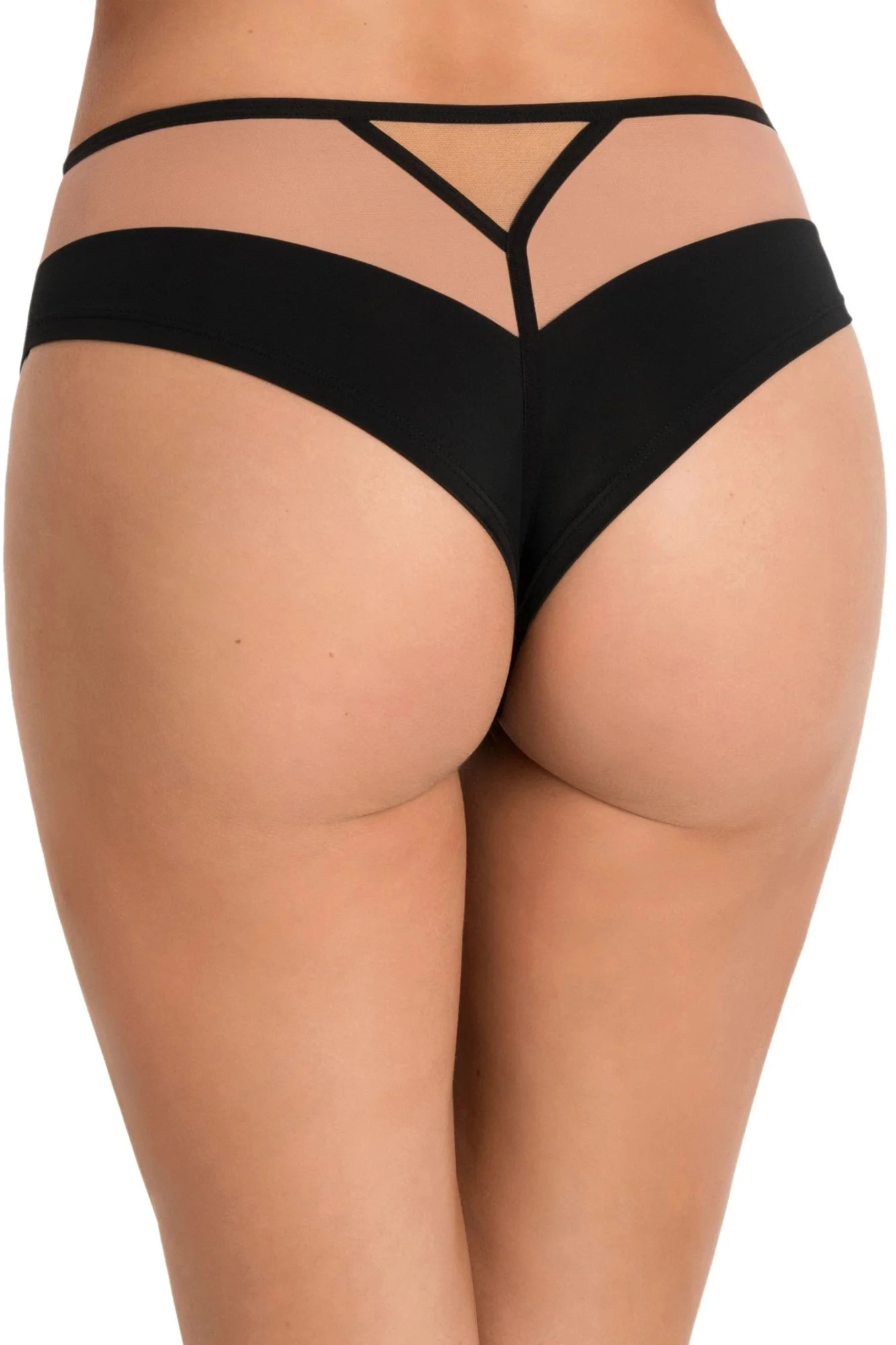 Dámské brazilky 887 Tesora GORSENIA - béžová barva - z mikrovlákna s prvky elastického tylu - švy kryté matnými pásky - na přední straně zdobené proužky z elastických pásků - zadní strana zakončená mikrovláknem - rozkrok podšitý bavlnou