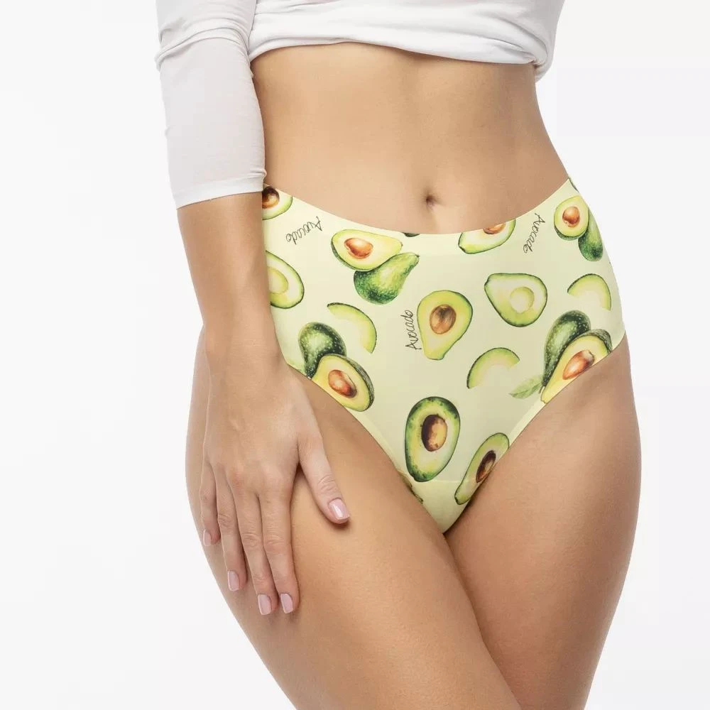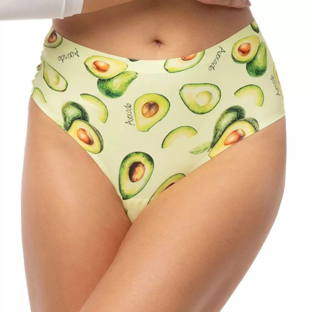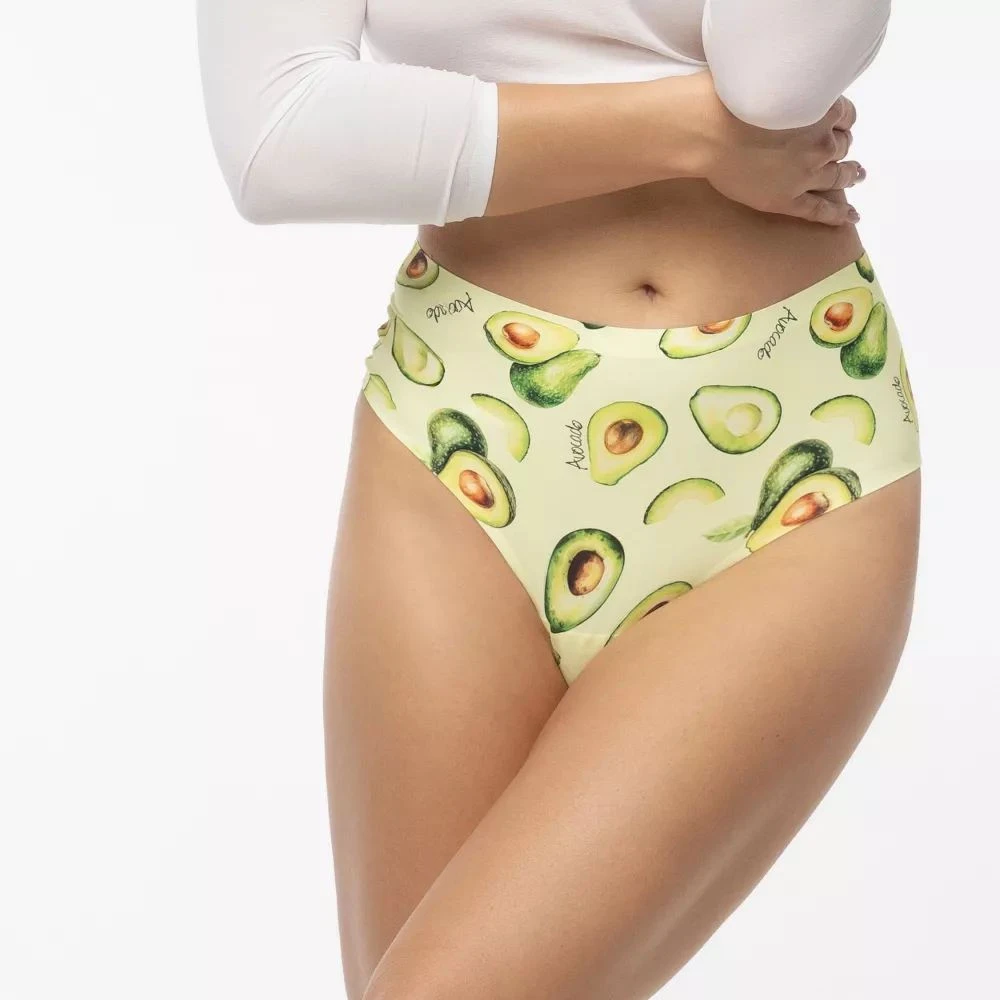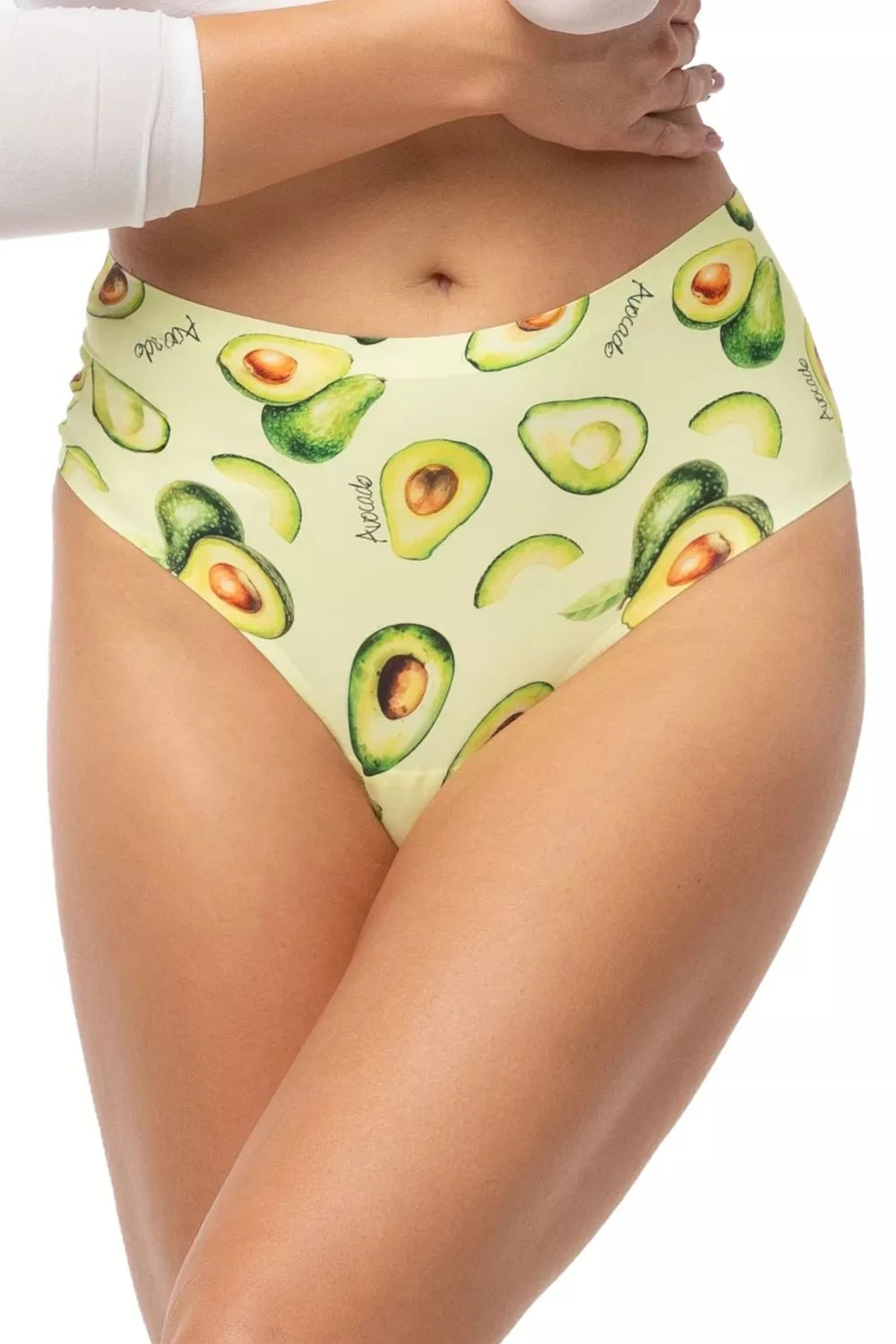 Dámské brazilky Avocado brasil maxi JULIMEX - zelená barva - z vysoce jakostní tkaniny - se vzorem - vyšší pas - technologie INVISIBLE LINE na ultratenké okraje - řezané laserem - neviditelné pod oblečením