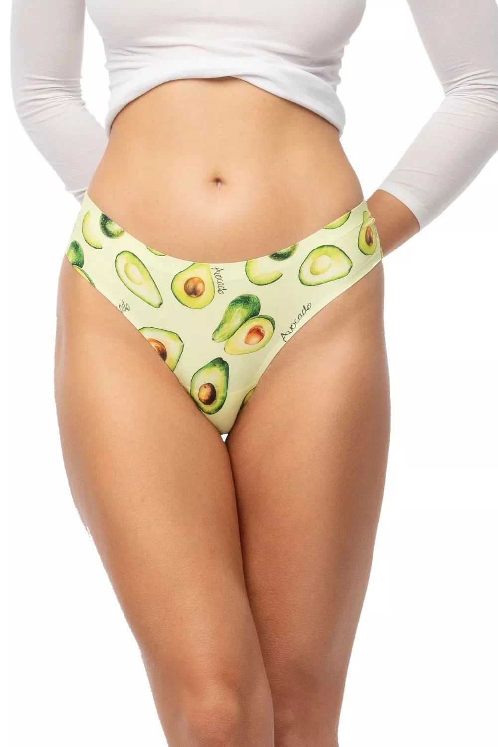 Dámské brazilky Avocado brasil JULIMEX - zelená barva - z hladkého bezešvého mikrovlákna - pestrobarevný potisk - nižší střih - bezešvá technologie Invisible-Line® - pod oblečením neviditelné - měkkost a lehkost zaručují maximální pohodlí i při dlouhodobém nošení