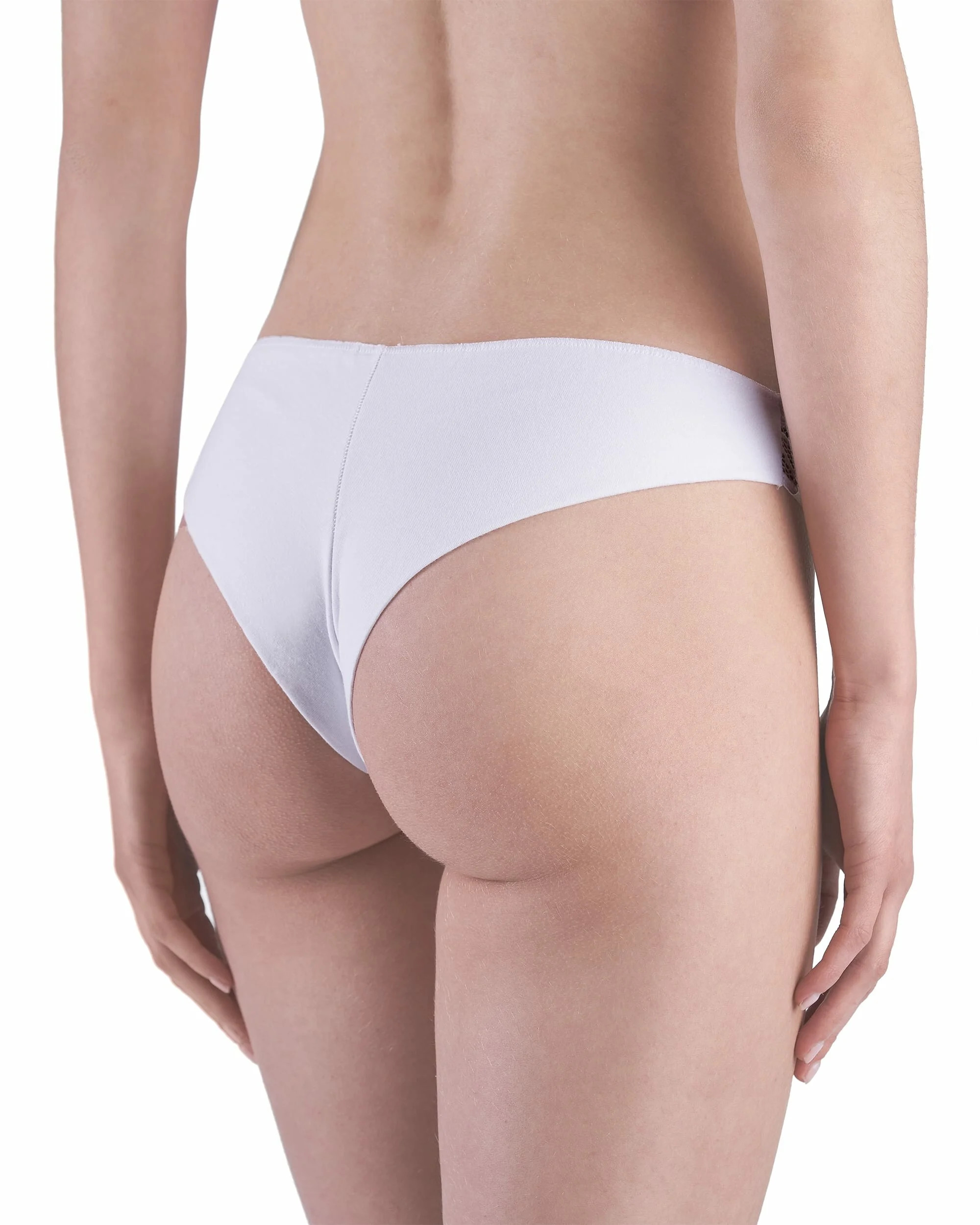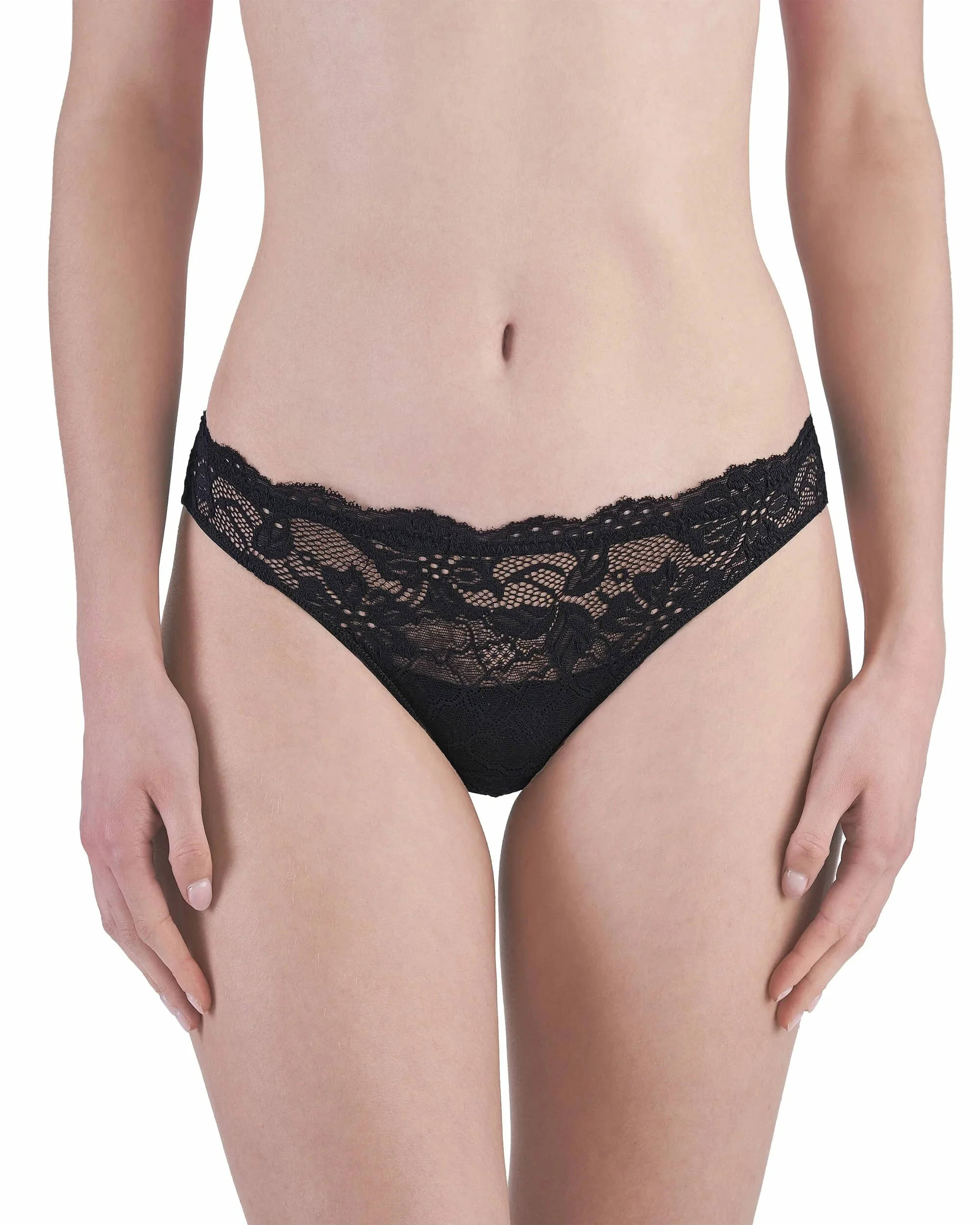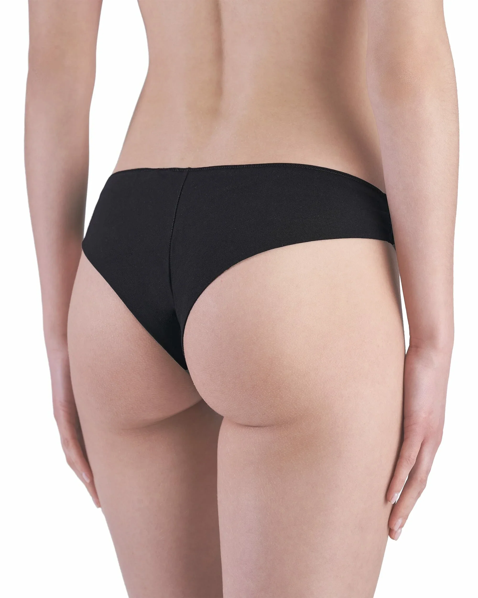 Dámské kalhotky brazilkového střihu Lovegirl od značky EMY. Brazilky jsou kombinací hladké černé látky a krásně dekorované krajky v přední části. Zadní část je prostřižena, aby dokonale padla na zadeček a je bezešvá. Uvnitř je vsazen bavlněný klínek pro pohodlné nošení.