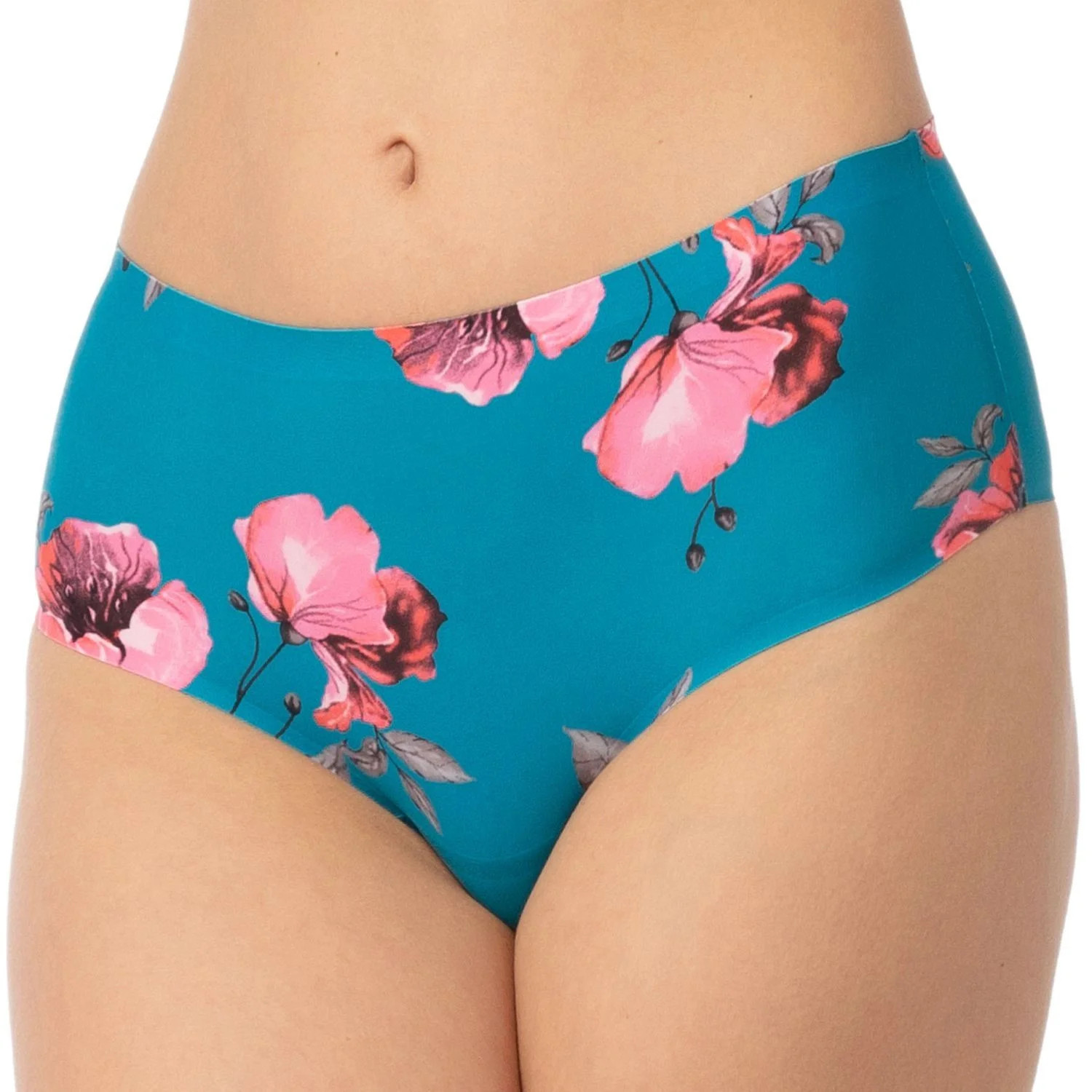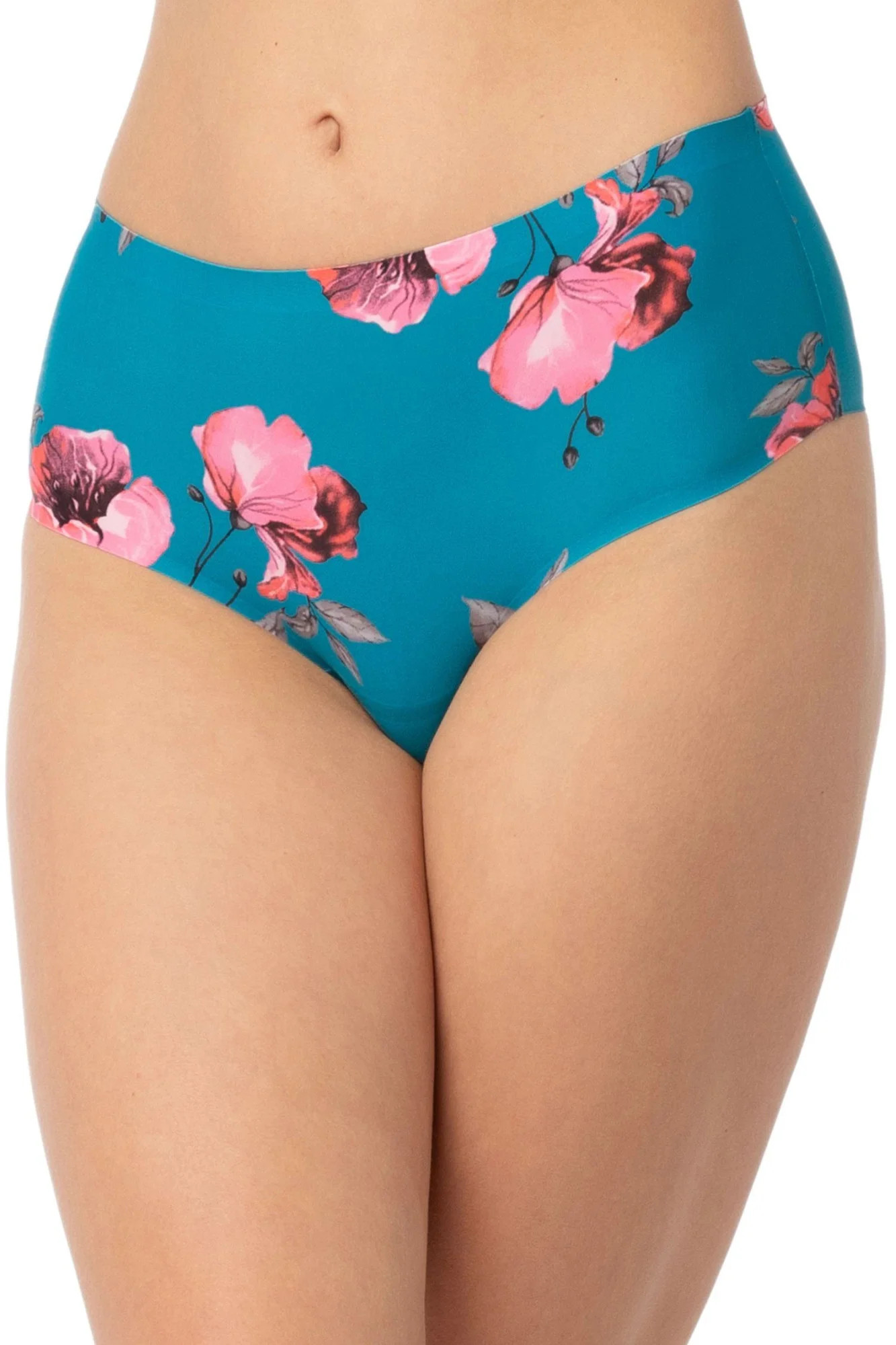 Dámské brazilky Wild Rose maxi JULIMEX - světle modrá barva - z vysoce jakostní tkaniny - se vzorem růží - vyšší pas - technologie INVISIBLE LINE na ultratenké okraje - řezané laserem - neviditelné pod oblečením