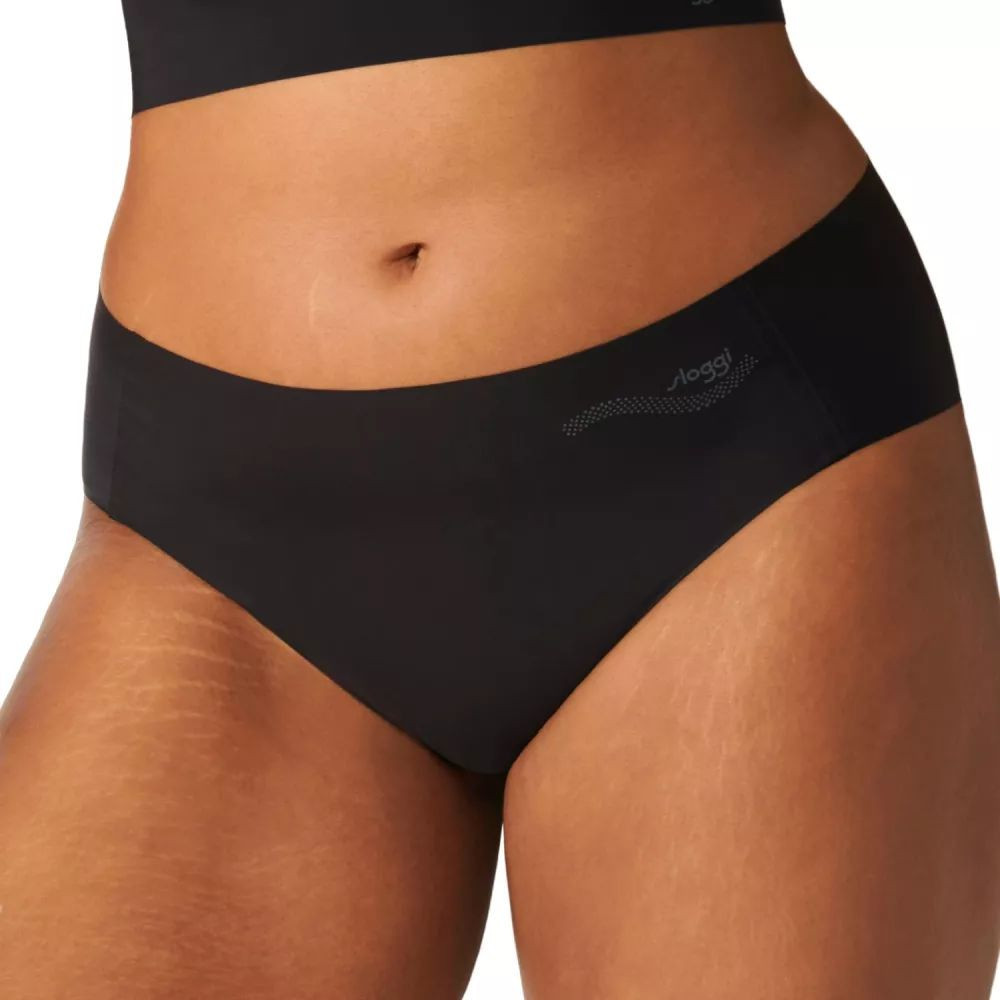 Dámské brazilky Zero Feel hipster black Sloggi - černá barva - ze super hladké a ultra lehké 3D ZERO tkaniny - bezešvé lemování - širší boky - ploché boční švy mírně posunuté do přední části - měkce polstrovaný rozkrok s bezešvým povrchem - neviditelné pod oblečením - malý potisk Sloggi na přední straně