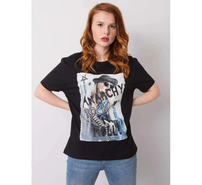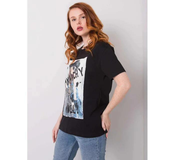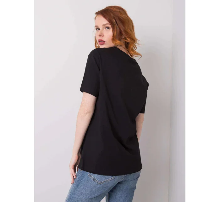 Dámské bavlněné oversize tričko srdcem a třásněmi černá