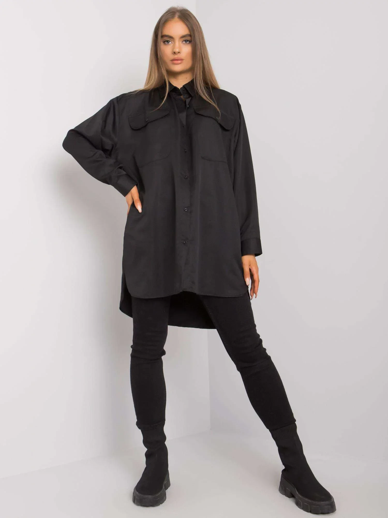 Střih: oversize s prodlouženým zadním dílem