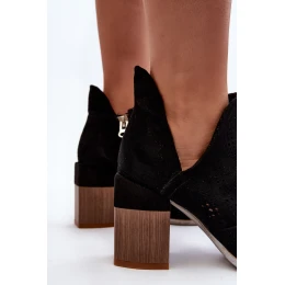 Dámské boty na masivním podpatku. Vyrobené z ekologického semiše. Špička s výstřihem se zapíná na zip. Kulaté špičky. Zpevněná patka. Tkaninová stélka zajistí pohodlí během nošení. Tento střih určitě využijete k mnoha jarním outfitům. Určitě je musíte mít ve svém šatníku! Při výběru velikosti se řiďte tabulkou velikostí.