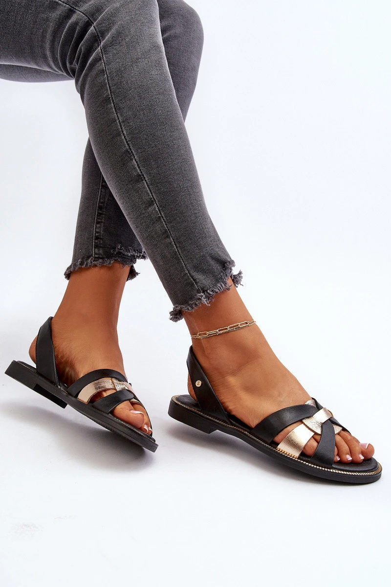 Dámské černé kožené sandály model 21651679 - Zazoo