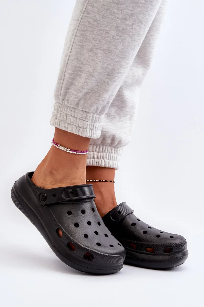 Dámské žabky z lehkého, pěnového materiálu. Pohyblivý popruh zajišťuje stabilitu a chrání nohu před sklouznutím. Platforma zajišťuje pohodlí při nošení. Další otvory ve svršku umožňují dostatečné proudění vzduchu a zajišťují pohodlí i v horkých dnech. Při výběru velikosti se řiďte tabulkou velikostí.