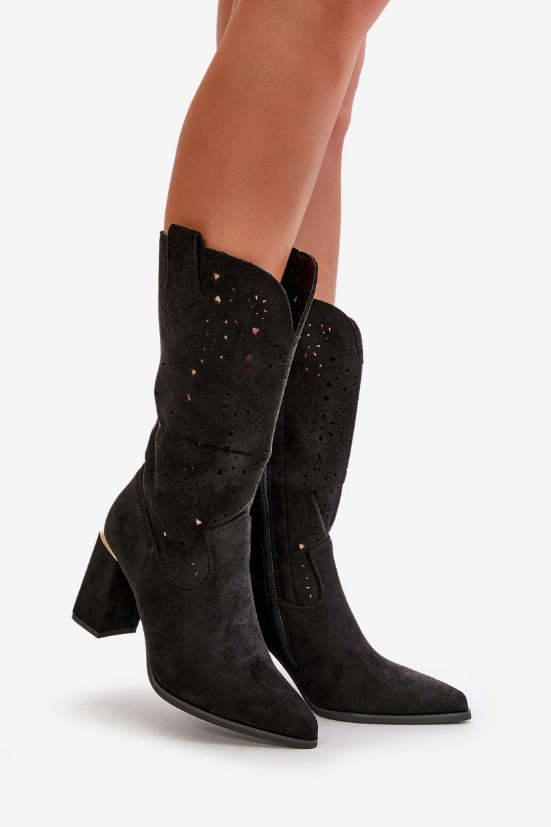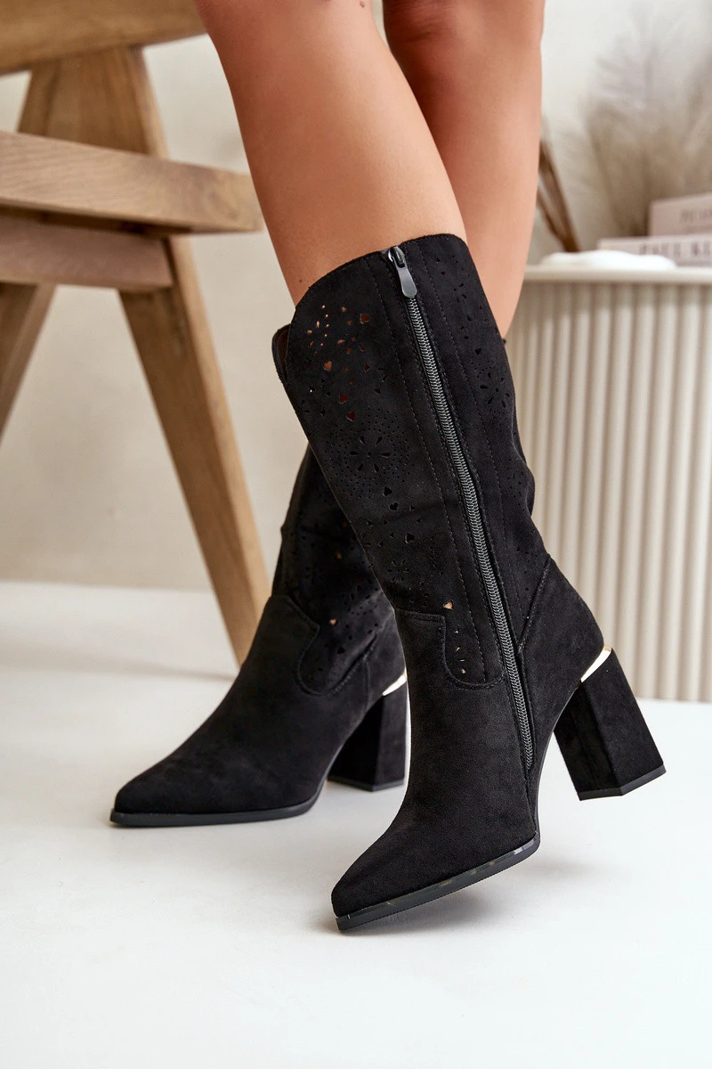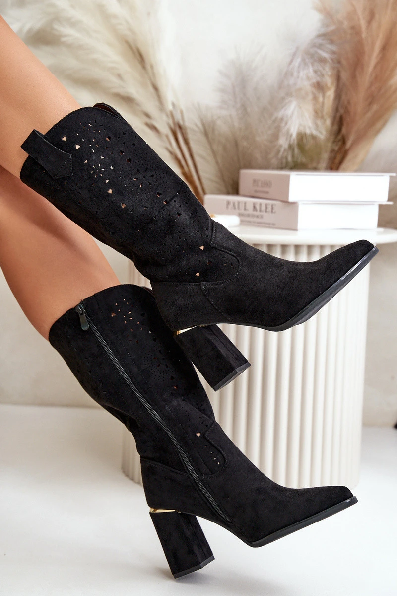 Dámské boty z příjemného dotyku eko semiše. Mají prodyšnou štíhlou skačku dosahující do poloviny lýtkové kosti. Umístěné na sloupkovém podpatku s zrcadlovým akcentem. Zapínají se na zip, s špičatými špičkami. Tento moderní a elegantní střih bude ideálním doplňkem mnoha stylizací! Při výběru velikosti se řiďte tabulkou velikostí.