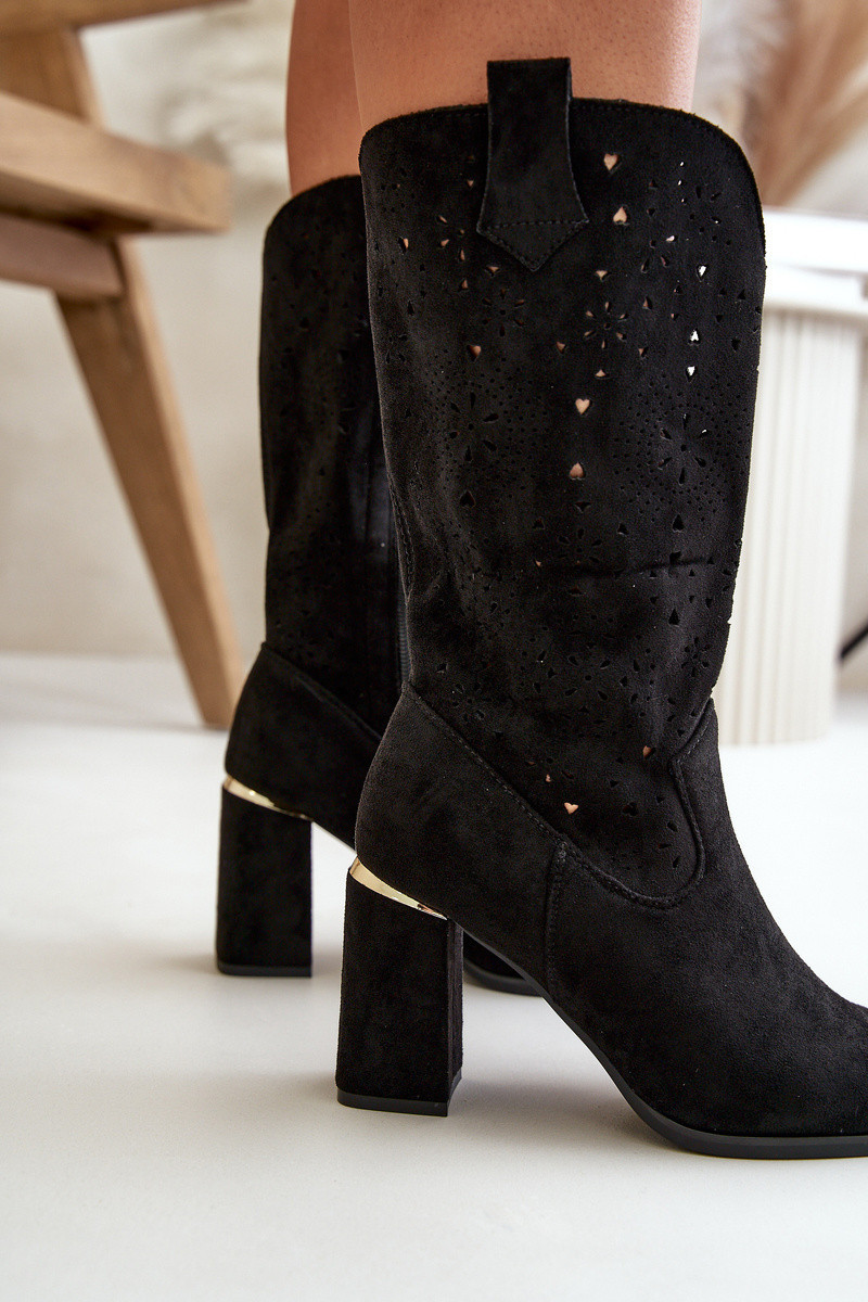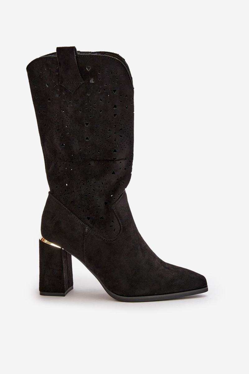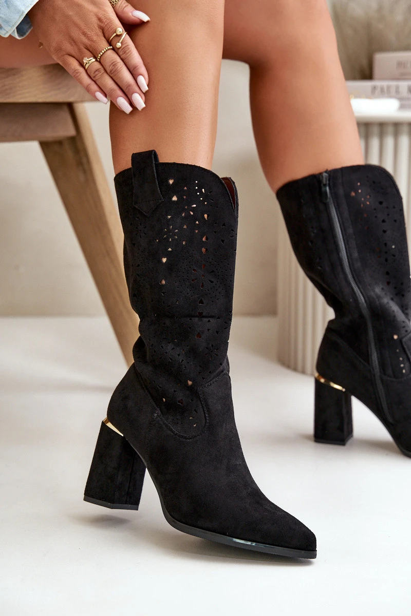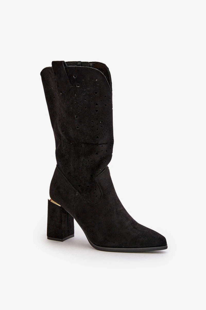 Dámské boty z příjemného dotyku eko semiše. Mají prodyšnou štíhlou skačku dosahující do poloviny lýtkové kosti. Umístěné na sloupkovém podpatku s zrcadlovým akcentem. Zapínají se na zip, s špičatými špičkami. Tento moderní a elegantní střih bude ideálním doplňkem mnoha stylizací! Při výběru velikosti se řiďte tabulkou velikostí.