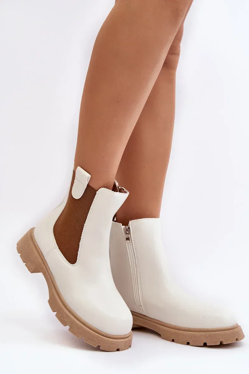 Dámské Chelsea kozačky na zip, White Ramhel