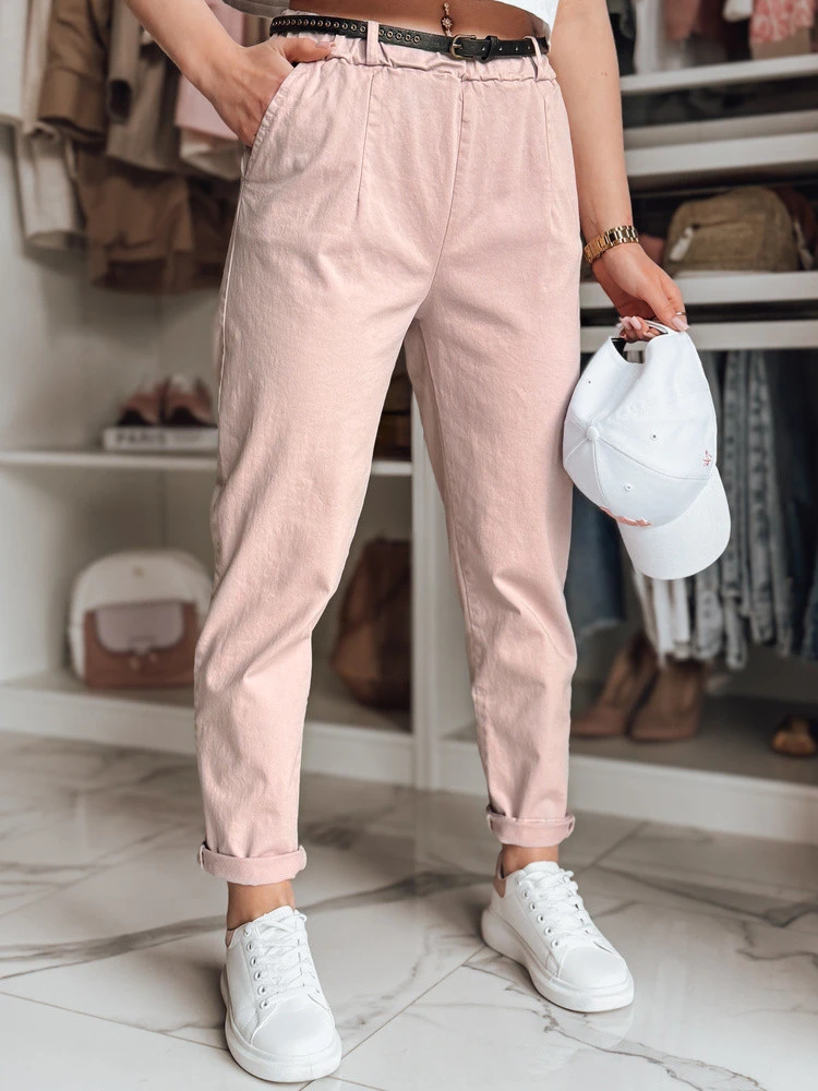 Dámské chinos kalhoty s páskem RELCIX růžové FashionStreet UY2583